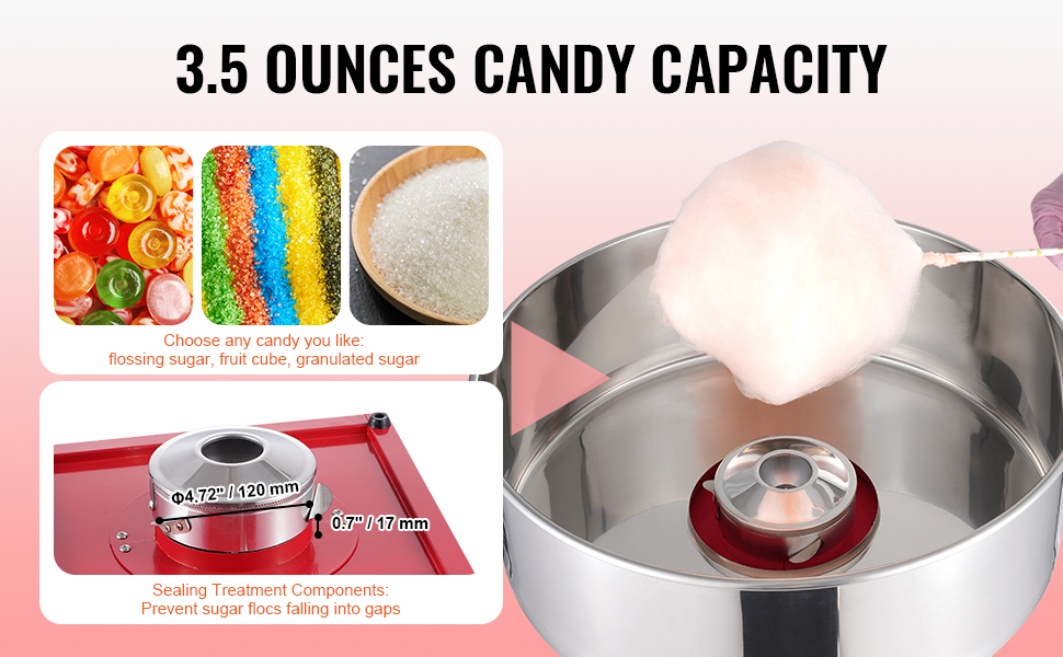 Contenu du coffret 1x Machine à barbe à papa 1 sucrier en acier inoxydable Contrôle simple Tension plus élevée pour un chauffage plus rapide, tension maximale recommandée pour la fabrication de barbe à papa. 1x Manuel d'utilisation Compatible avec le sucre cristallisé, dur ou au lait (sauf le gel) Idéale pour la maison, les fêtes et les petits stands Diamètre du sucrier : φ14,96 po / φ38 cm Dotée d'une puissance de chauffe de 1000 W et d'une capacité de 105 g de sucre, elle est idéale pour les personnes qui souhaitent faire de la barbe à papa. VEVOR Machine A Barbe A Papa Avec Chariot Et Couvercle 1000 W Appareil A Barbe A Papa Commercial 6 Pcs Min Bol En Inox Alimentaire Temperature 95 8 23 90465235 Cette machine à barbe à papa, facile à utiliser, est idéale pour les débutants 1 cuillère à sucre en acier inoxydable, 1x fusible Caractéristiques principales Facile à installer et à détacher Détachez facilement la plaque à sucre pour un nettoyage en profondeur, assemblage rapide pour une installation rapide. Nettoyage facile en 1 minute : Versez de l'eau pendant le fonctionnement (gardez une distance appropriée), la tête de sucre tourne pour éliminer les restes. Hauteur du sucrier : 12 cm Spécification Numéro de modèle de l'article : MHTJJPXMO1-3S, Puissance totale : 1000 W Vitesse maximale du moteur : 3 500 tr/min Il réduit les dysfonctionnements et prolonge la durée de vie de la machine à barbe à papa électrique. Poids du produit : 10,65 lb / 4,83 kg Découvrez notre analyse complète de la machine à barbe à papa électrique VEVOR 1000 W : efficacité, facilité d'utilisation et plaisir sucré garanti dans ce test détaillé Machine A Barbapapa Machine à Barbe à Papa électrique 1000 W, Appareil Commercial Avec Bol Inox 52 Cm Cuillere A Sucre Tiroir Bleu Vevor 96002613 Machine Barbe à Papa Vevor Inox Temps de préchauffage : 2 à 3 minutes Utilisation facile en 3 étapes : Préchauffage de 2 à 3 minutes, réglage de la puissance via le bouton de tension (tension maximale recommandée). Polyvalent pour les sucres Fonctionne avec du sucre granulé/dur/spécial (bonbons en gel exclus).