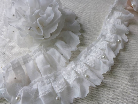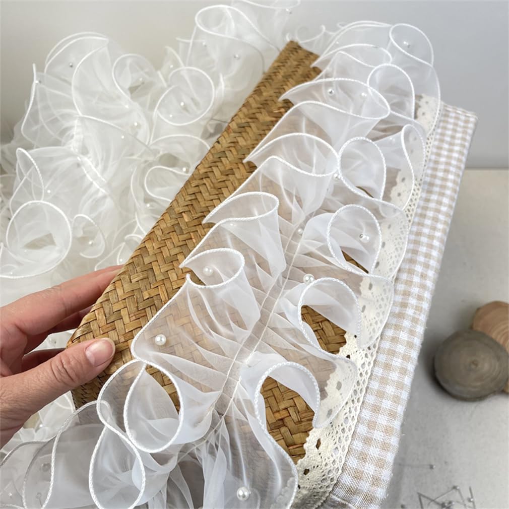 Ruban en organza avec fleurs, largeur 50 mm | Mercerie et Tissus Ruban d'organza plissé - Fils et Fantaisies - broder des fleurs en volume Ruban Organza Plissé Perles Ruban En Organza Plissé Avec Bordure En Dentelle - 9,1 M De Large - 2,5 Cm Dentelle Tulle 11cm Largeur Spécifications: Matière : polyester Couleur : voir photo., Dimensions : largeur env., 11 cm environ. Matériau : la bordure en dentelle de tulle élastique en polyester est bien en forme, agréable au toucher, lavable et durable, pas facile à casser ou à décolorer. Destock 1.1m tissu dentelle broderie tulle brodé de sequins perles haute couture largeur 145cm... Contenu : 1 mètre de ruban en organza plissé avec perles. Dimensions : environ 11 cm de large, vous pouvez choisir différentes longueurs selon vos besoins, 1 yard, 2 yards, 3 yards, 5 yards, 10 yards. Large application : parfait pour les robes de mariée, les coiffures de mariée, les bandeaux, les robes, les jupes ou d'autres accessoires vestimentaires. Élégant et beau : ruban d'organza plissé avec perles Les plis sont cryptés, et la dentelle est plus tridimensionnelle, moelleuse et élégante.