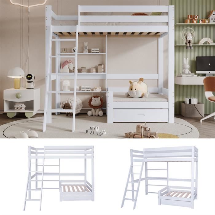 Le niveau inférieur est un espace de travail et de divertissement, équipé d'une table et d'une armoire. Lit Superposé Sécurisé Marches Lit étage Armoire Intégrée Lit Superposé Fer Avec Bureau Et Armoire - 90x200cm Multifonction Pour Enfant Certifié EN747 Lit étage Rangement Lit Superposé Avec Armoire « Lit en fer, lit superposé, adapté aux enfants et aux adolescents, avec table et armoire Dimensions du matelas pour ce lit en fer : 90 x 200 cm, épaisseur de matelas recommandée : 10 cm. SpécificationsMatière : Fer, Panneaux de particulesDimensions du produit : 244*95*170 cmPoids du produit : 60 kgCapacité de transport : Lit mezzanine 100 KG ; Etagère 15 KG ; Armoire 10 KGTaille du matelas applicable : 90x200 cm (matelas non compris)Assemblage nécessaire, outils et instructions inclus.3 colis peuvent être livrés... Bibliothèque intégrée : un bureau se trouve sous le lit. Des tiroirs et des casiers à droite du bureau offrent un espace de rangement supplémentaire pour les livres, les jouets et autres objets. Description du produit : cadre en fer robuste : le lit superposé est fabriqué en fer de haute qualité, garantissant une durabilité et une stabilité exceptionnelles. Ce cadre solide peut supporter des charges élevées, idéal pour les enfants et adolescents. Escaliers en bois latéraux : equipé d'escaliers en bois, le lit permet un accès facile et sécurisé au niveau supérieur. Les... L'arrière du lit est équipé de dispositifs anti-basculement qui peuvent être fixés au mur pour augmenter la stabilité. Ce lit superposé polyvalent dispose d'un espace de rangement, d'un espace de couchage et d'un espace de travail, ce qui en fait une solution pratique et peu encombrante pour les chambres à coucher disposant d'un espace limité. Couchage sûr : le lit supérieur est entouré de barrières qui offrent une sécurité supplémentaire et ont une surface de couchage de 90 x 200 cm. Lits, chambre & literie, Lit superposé KYLE blanc/orange avec bureau et Le cadre de lit et les sommiers à lattes sont en fer et offrent une bonne capacité de charge et une résistance à la déformation. Accessibilité pratique : l'échelle inclinée à 4 marches permet un accès sûr et facile à l'étage supérieur et rend le lit à la fois pratique et sûr.