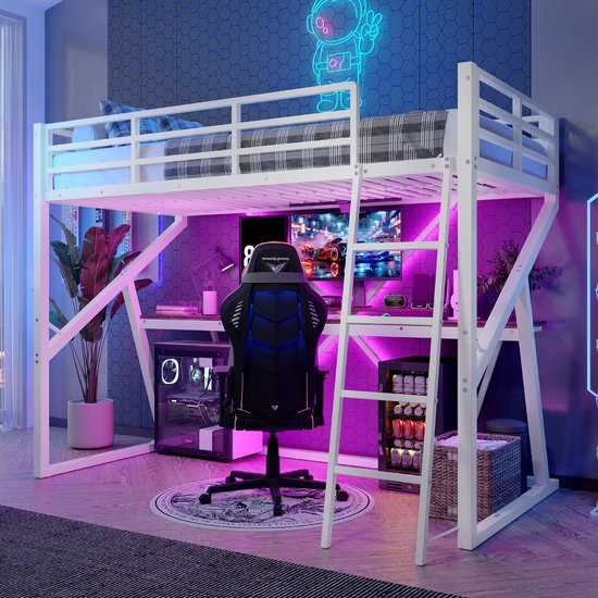 Lit Toboggan Enfant Lit Mezzanine Métallique Avec Bureau, étagères Et Espace Rangement M25094055 Lit étagère Escalier Intégré Lit mezzanine métallique avec bureau, étagères et espace rangement 90*200 Optimisez l'espace de la chambre avec ce lit mezzanine métallique multifonctionnel, parfait pour combiner sommeil, travail et rangement Lit mezzanine pour enfant - 140 x 200 cm - avec étagères de rangement + bureau avec prise + USB Réalisé en matériaux durables à la structure stable, son design épuré s'adapte aussi bien aux ambiances contemporaines que classiques. Lit mezzanine multifonctionnel 90x200 cm en métal avec rangement étagères escalier pour adulte et enfant noir ... Payez en 3x, 4x, 10x, 12x. Vendu et expédié par... Une solution innovante pour allier gain de place, fonctionnalité et esthétique sans compromis., 1., Gain de Place Intelligent Idéal pour les petits espaces, ce lit mezzanine libère un volume généreux en dessous, créant une surface utilisable optimisée pour les studios et les chambres compactes., 2., Échelle-Rangement Intégrée Chaque marche de l'échelle solide se transforme en compartiment de rangement pratique, parfaitement adapté au stockage des chaussures, livres et objets du quotidien., 3., Organisation Optimisée Avec son grand placard intégré et ses multiples casiers sous le lit, ce modèle offre des solutions de rangement structurées pour maintenir l'espace parfaitement organisé., 4., Espace Multifonctionnel La zone sous le lit se transforme selon vos besoins en bureau, atelier ou coin détente, s'adaptant aussi bien aux exigences des adultes qu'à l'univers des enfants., 5., Construction Durable et Design Alliant structure métallique robuste et panneaux bois, ce lit garantit stabilité et longévité. Son échelle robuste à marches compartimentées permet un accès sécurisé tout en offrant des espaces de stockage intégrés pour chaussures, livres ou effets personnels. Complété par un placard intégré, il garantit une organisation optimale de votre intérieur. Élevé pour libérer un généreux volume utilisable en dessous, il combine couchage confortable et solutions de rangement ingénieuses.