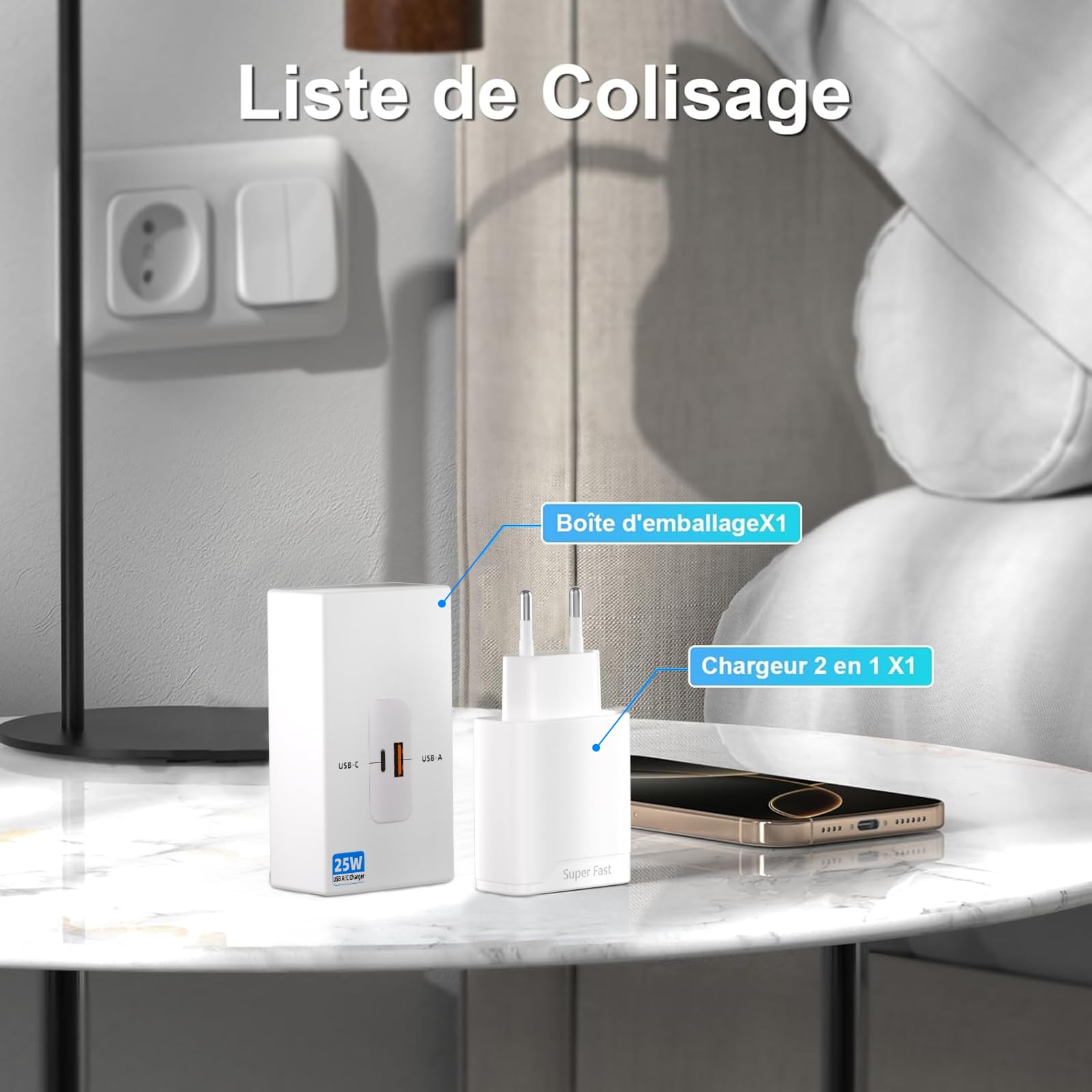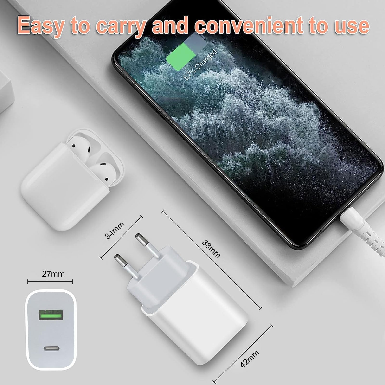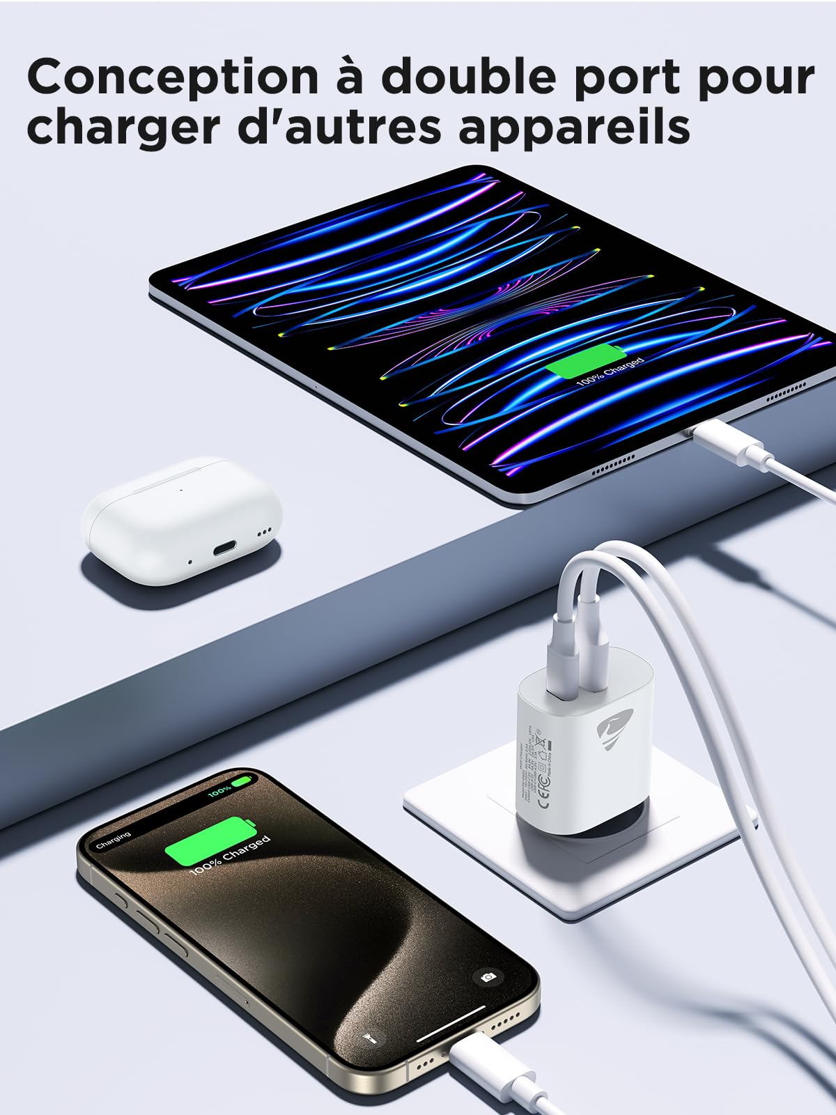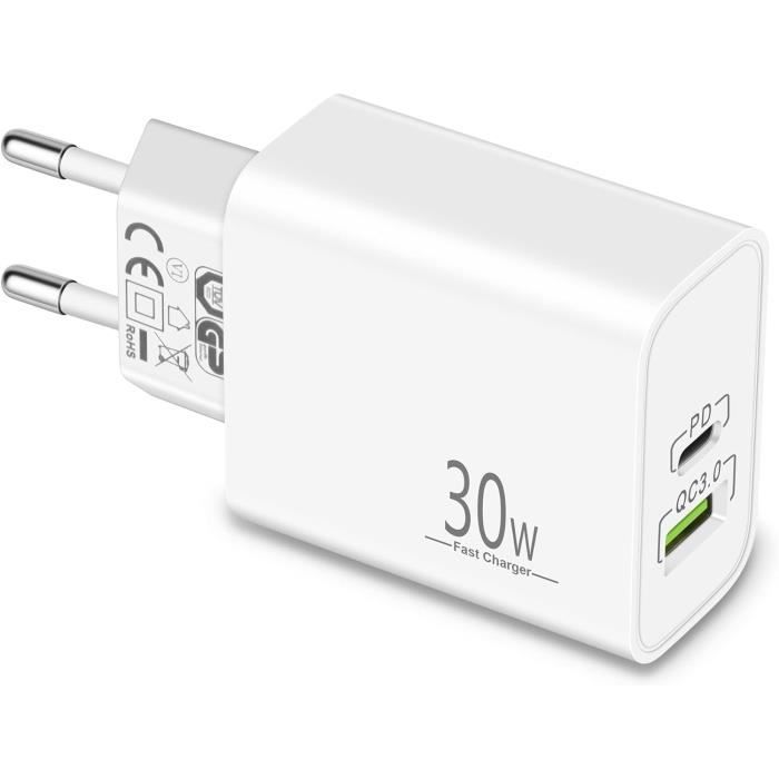 Sécurisé, efficace, compact et portable – idéal pour petits sacs. Bloc Chargeur Usb Chargeur USB C Recharge Rapide Avec Câble,20W Prise 2 Ports Chargeur Usb C 20w 【PROTECTION INTELLIGENTE ET SÉCURITÉ】Le chargeur mural USB-C intègre également une puce intelligente qui protège votre téléphone contre la surchauffe, la surtension et les surtensions électriques générales. Des alternatives à bon prix par rapport aux marques Il vous permet de recharger rapidement vos appareils, notamment lorsque vous êtes pressé Vous n'aurez pas de regrets en choisissant ce bloc de charge pour une performance de charge optimale Chargeur secteur USB-C BoostCharge (20 W) avec câble USB-C vers USB-C Parfait et économique pour vos appareils. Compatible avec Power Delivery, universel. Chargeur USB-C 20W – Puissance stable pour tous les appareils USB Spécifications : produit : Chargeur USB-C à double port Matériau : Plastique PC Puissance : 20W Entrée : AC100-240V Sortie : Type-C : DC5V = 3A USB-A : DC5V = 3A C + A : DC5V = 3., 6A Couleur : Blanc/Noir 【COMPATIBILITÉ LARGE 】Le chargeur USB-C est largement compatible avec iPhone 16/15/14/14 Plus/14 Pro/14 Pro Max/iPhone 13/13 Pro Max/iPhone 12/12 Mini/12 Pro/12 Pro Max/iPhone 11/11 Pro/11 Pro Max/XS/XS Max/XR/X/8/7/6, iPad Pro 11 2020/iPad Air 3 10., 5 et la plupart des derniers smartphones et tablettes 【DOUBLE PORTE ET COMPACTE】Le bloc de charge USB-C avec double port sur une seule fiche vous offre la flexibilité d'utiliser à la fois un câble USB-A ancien et un câble USB-C. Chargeur rapide pd 20w usb type c qc 3.0 avec câble usb type c vers c... Chargeur Usb C 30W Et Câble Type C 2M, Prise 2 Ports Avec Pd3.0-Qc3... Recharge 2 iPhones simultanément à 20W. Contenu du paquet : 1 x Bloc de charge USB-C 20W, 1 x Câble C-C Pack de 1 adaptateurs 20W,1 x Câble C-C Adaptateur mural double port, recharge rapide 20W stable pour appareils USB.