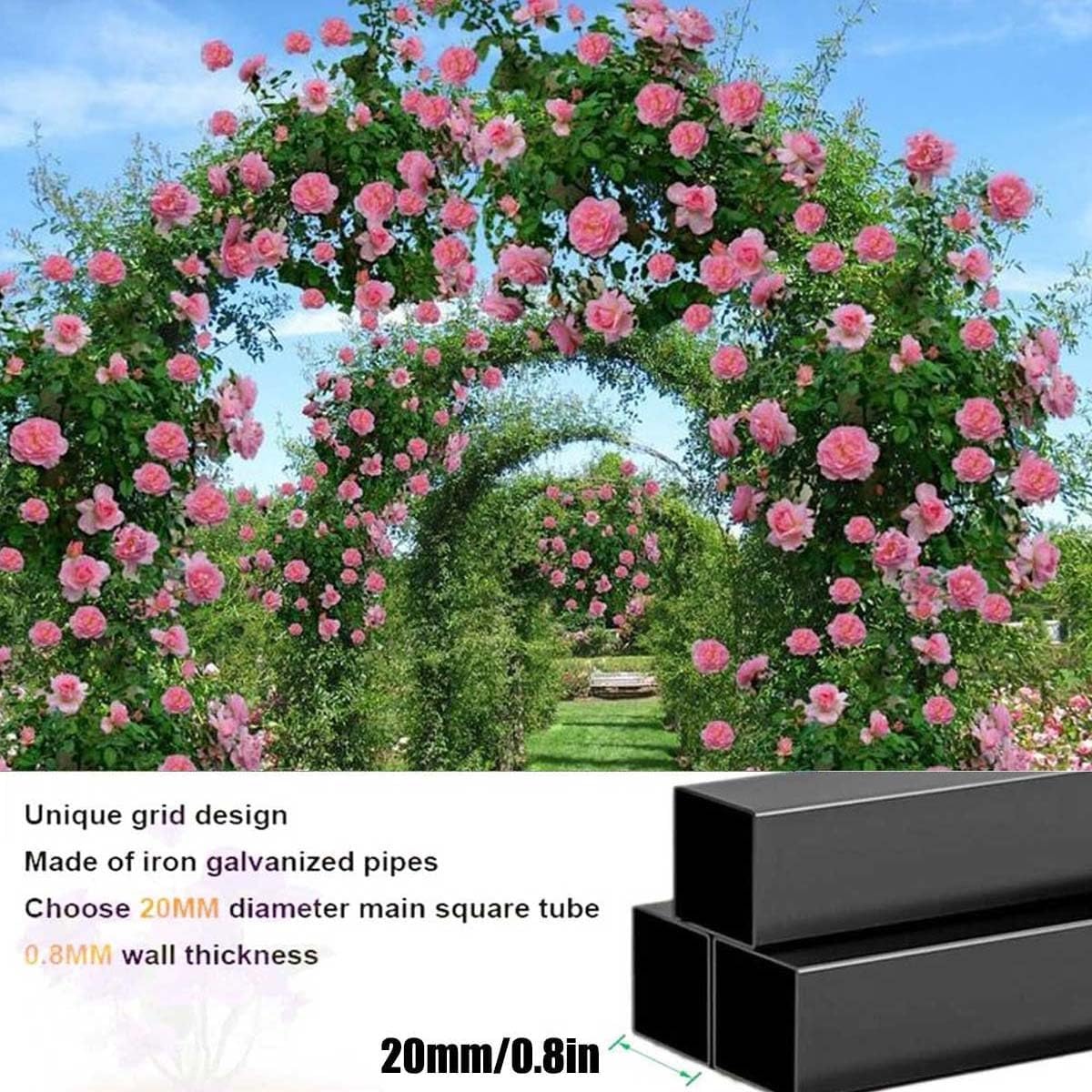 Arche Décoration Mariage Extérieur Arche De Jardin En Métal Avec Cadre En Acier, Arche De Mariage, Arche Arche Rosier Grimpant Galvanisée Arche Jardin Métal avec BaseDecoration Mariage Arche TonnelleTreillis... Arche de Jardin en Métal, Arche pour Plantes Grimpantes en Métal L'arche peut être utilisée individuellement ou plusieurs arches peuvent être placées côte à côte pour former une tonnelle de jardin. Arceau De Jardin Arche Métal Rosier Arche Jardin Arceau À Rosiers... Largement utilisé comme décorations d'arche de mariage, décorations de jardin, guirlandes de vigne, vignes, guirlandes lumineuses, tissu, fleurs, verdure, etc. Elle peut être facilement décorée de fleurs, de ballons et de rubans pour créer une atmosphère romantique. Robuste et stable : La conception en treillis, le support de base et la structure solide augmentent la stabilité et la durabilité, résistent aux intempéries et conviennent à une utilisation extérieure prolongée. Décoration événementielle : La pergola convient à une utilisation intérieure et extérieure, pour les fêtes, les mariages et les célébrations.