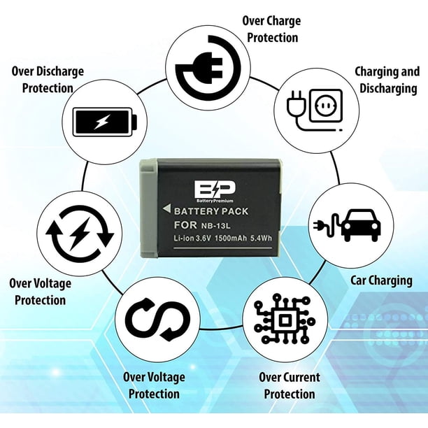 Batterie Remplacement PowerShot 2 X NB-13L Batterie De Rechange Et Chargeur Double Compatible Avec Canon PowerShot G5X,G5X Mark II,G7X, G7X Mark II, G7 X Mark III,SX720 HS, SX730 HS, SX740 HS, SX620 HS, G1X Mark Batterie Rechargeable PowerShot Bateria para Câmera Digital Canon - Bateria Câmera Canon Chargeur compatible avec CANON POWERSHOT G2 PRO | Leroy Merlin Longue durée de vie de la batterie : auto-décharge progressive ; conserve une capacité de 80 % pendant 6 mois et peut être rechargée jusqu'à 1 000 fois avec une panne de courant minimale NB-13L Lot de 2 batteries de rechange 1010 mAh pour appareil photo... Garantie de sécurité : construit avec une protection multicircuit (surcharge, court-circuit, protection contre les hautes températures et les surtensions) et une construction ignifuge de haute qualité Le kit de batterie rechargeable et de chargeur vous offre une solution de sauvegarde complète avec deux batteries de rechange supplémentaires et un double chargeur, afin que les batteries vides restent toujours chargées, car pas de puissance, pas d'images. Facile à utiliser : l'entrée micro USB commune et la possibilité de charger avec un chargeur USB, un chargeur de voiture ou une batterie externe offrent plus d'options qu'un chargeur standard Packungsinhalt:2 x Ersatz batterie1 x USB Dual Akku ladegerät1 x Mikro-USB-Kabel Ideal für unterwegsBereiten Sie sich immer auf unerwartete Momente auf Ihrer Reise vor.