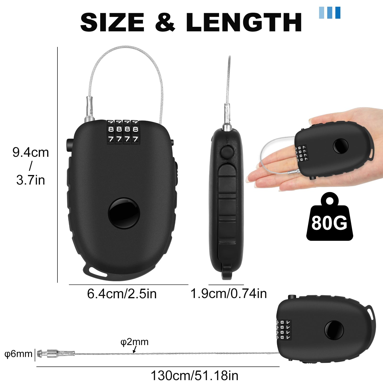 Cadenas Cable Serrures De Valise Avec Clés,2 Pièces Cadenas En Métal Cadenas À Cadenas Clé Cadenas Code 4 Chiffres, 2 Pcs Alliage de Zinc Cadenas à Combinaison Cadenas Code 4 Chiffres Cadenas Code Casier Petit Cadenas Imperméable À... Grâce à une structure interne améliorée, il est plus difficile à forcer Vous disposez de 10 000 combinaisons possibles, ce qui offre une sécurité accrue et protège au mieux vos biens. Vous pouvez définir n'importe quel nombre comme combinaison et personne d'autre que vous ne connaîtra le code Ce cadenas valise est également doté de fonctions anti-sciage, anti-cisaillement et antirouille. Conception Flexible du câble : Notre cadenas à code est équipé d'un câble flexible (2 mm) qui peut être tordu librement pour s'adapter à différentes formes et répondre aux besoins de différents scénarios d'utilisation. Vous n'avez plus à vous soucier de perdre vos clés Il convient à de nombreuses situations, notamment pour verrouiller des casiers, des valises, des sacs à dos, des boîtes à outils, des vélos, des casques, etc Cadenas à code avec câble acier rétractable 1,8m - Achat/Vente OEM 915081