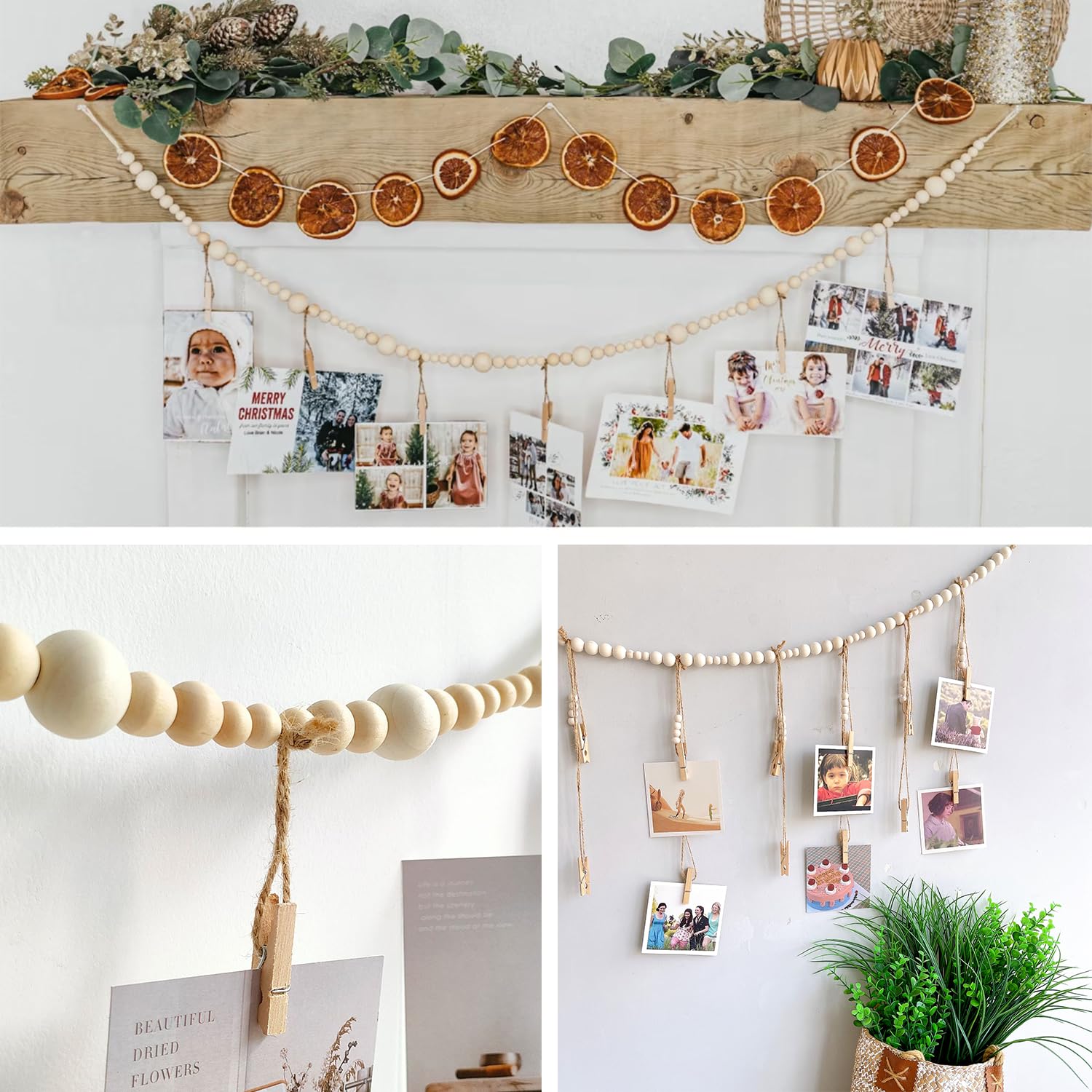 Pele Mele Photo Mural Présentoir Photo à Suspendre Avec Clips, Support Mural Pour Photos Accroche Photo Mural Pince Facile à Utiliser]Le support pour photo murale est fabriqué à l'aide d'une combinaison de deux cordes et de clips en bois, de sorte que vous pouvez facilement changer et personnaliser la photo ou l'image affichée à tout moment Présentoir à Photo Suspendu, Tableau d'Affichage de Photos, Corde Multifonctionnel avec clips photo: En accrochant des photos, ce n'est pas seulement une décoration, en plus d'être un présentoir photo, vous pouvez également partager vos cartes postales, votre salon, Noël, votre mariage, vos photos de fête, etc 100pcs - 2.5 cm - Pinces de Support pour plantes en plastique... Parker, mariage, pendaison de crémaillère, anniversaire, fête des mères, fête des pères, fête de l'indépendance, Noël ou d'autres jours significatifs Haute qualité et taille : la guirlande de perles en bois est fabriquée à la main en bois de qualité et en corde de jute, durable, pas facile à casser, peut être utilisée pendant une longue période Beauté:la photo murale porte convient à toutes les tailles de photos, peut être facilement stockée et exposée, c'est une très belle décoration Spécification : Matériel : Bois Couleur : Couleur du protocole Taille:Câble photo perles en bois : 115 cm Le paquet comprend : 1 x corde photo en perles de bois Conseils importants : 1., en raison de la mesure manuelle, il peut y avoir de légères différences., 2., il peut y avoir une légère différence de couleur en raison des différentes lumières et des moniteurs., 💖