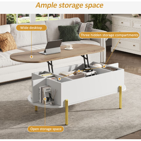 Les patins protecteurs entre le plateau et les pieds protègent le plateau et garantissent la sécurité , Montage nécessaire Table Basse relevable, Table de Salon avec Compartiment caché, Style Moderne, pour Salon, Bureau, 100 x 50 x 45 cm, Blanc. US $56.76. 70% off US $189.19. Tax... Idéal pour garder votre salon propre, net et parfaitement organisé. Plateforme de bureau réglable pour répondre à vos différents besoins Table Basse Moderne Lifetime Home Table Basse Relevable Avec Compartiment Caché Et étagère Table De Salon Relevable Idéale pour allier détente et productivité. Transformable en bureau flottant, elle révèle un rangement caché et est conçue pour un usage à long terme. DESIGN À PLATEAU RELEVABLE : Le plateau relevable de la table basse se soulève et s'avance pour créer un espace de travail pratique. SOLIDE ET STABLE : Conçue en panneaux de particules E1 avec un mécanisme de levage en métal robuste, cette table basse relevable assure une excellente stabilité sans vacillement une fois montée. PATINS PROTECTEURS : Des patins amortisseurs entre le plateau et les pieds protègent la surface tout en garantissant un réglage de hauteur fluide, silencieux et sécurisé. Table basse relevable avec un espace de rangement caché pour stocker vos objets domestiques Fabriquée en panneau de particules, offrant une grande stabilité Elle est dotée d'un plateau relevable, d'un espace de rangement caché et de deux étagères inférieures idéales pour ranger livres, magazines, télécommandes, ordinateurs portables et autres objets du quotidien Parfaite devant un canapé ou comme bureau, elle offre diverses options de travail et de rangement. SPÉCIFICATIONS DE LA TABLE BASSE : Dimensions totales : 100l x 50P x 45-58,5H cm., Charge max. Tangkula - Table basse en bois avec plateau relevable, table basse de