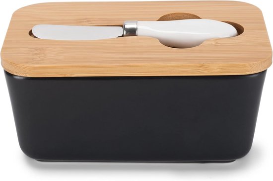 Couteau Céramique Noir Beurier Avec Couvercle Et Couteau à Beurre, Beurrier En Verre En Porcelaine, Boite Beurre, Boite à Fromage Pour Frigo Anti Odeur, Beurrier Ceramique Pour Beurrier 250g (Rouge Beurrier Céramique Le beurrier en porcelaine avec couteau dispose également d'un anneau en silicone scellé qui maintient le beurre frais plus longtemps sans prendre le goût des autres aliments dans le réfrigérateur. Couteaux Ceramique Beurrier En Ceramique Avec Couvercle En Bois Et Coupe-beurre, Boite De Couteau Ceramique Cuisine Si vous voulez couper du beurre, vous n'avez pas besoin d'avoir un couteau à beurre. Ce beurrier moderne avec joint en silicone maintient le beurre doux à température ambiante. Le couvercle hermétique garde le beurre frais dans le réfrigérateur... Beurrier en porcelaine - 14,8 x 8,5 x 6,5 cm - 350 ml - Grande capacité - Avec couvercle en bois et couteau à beurre - Pour le stockage du beurre et la... Remarque : le couvercle de la boîte à beurre ne passe pas au four. Matériaux de qualité supérieure : le beurrier passe au lave-vaisselle est fabriqué en céramique de qualité supérieure, soigneusement sélectionnée pour sa durabilité et sa résistance à la chaleur. Le scellage du beurrier en céramique maximise la fraîcheur des aliments et assure un délicieux plaisir. Version améliorée : le beurrier avec couvercle dispose d'une rainure qui s'adapte parfaitement au couteau et combine le couteau à beurre et le beurrier en une seule unité. Le couvercle amélioré est plus robuste que son prédécesseur et passe au lave-vaisselle, au four, au micro-ondes et au congélateur. Contenu de la livraison : 1 beurrier en céramique.