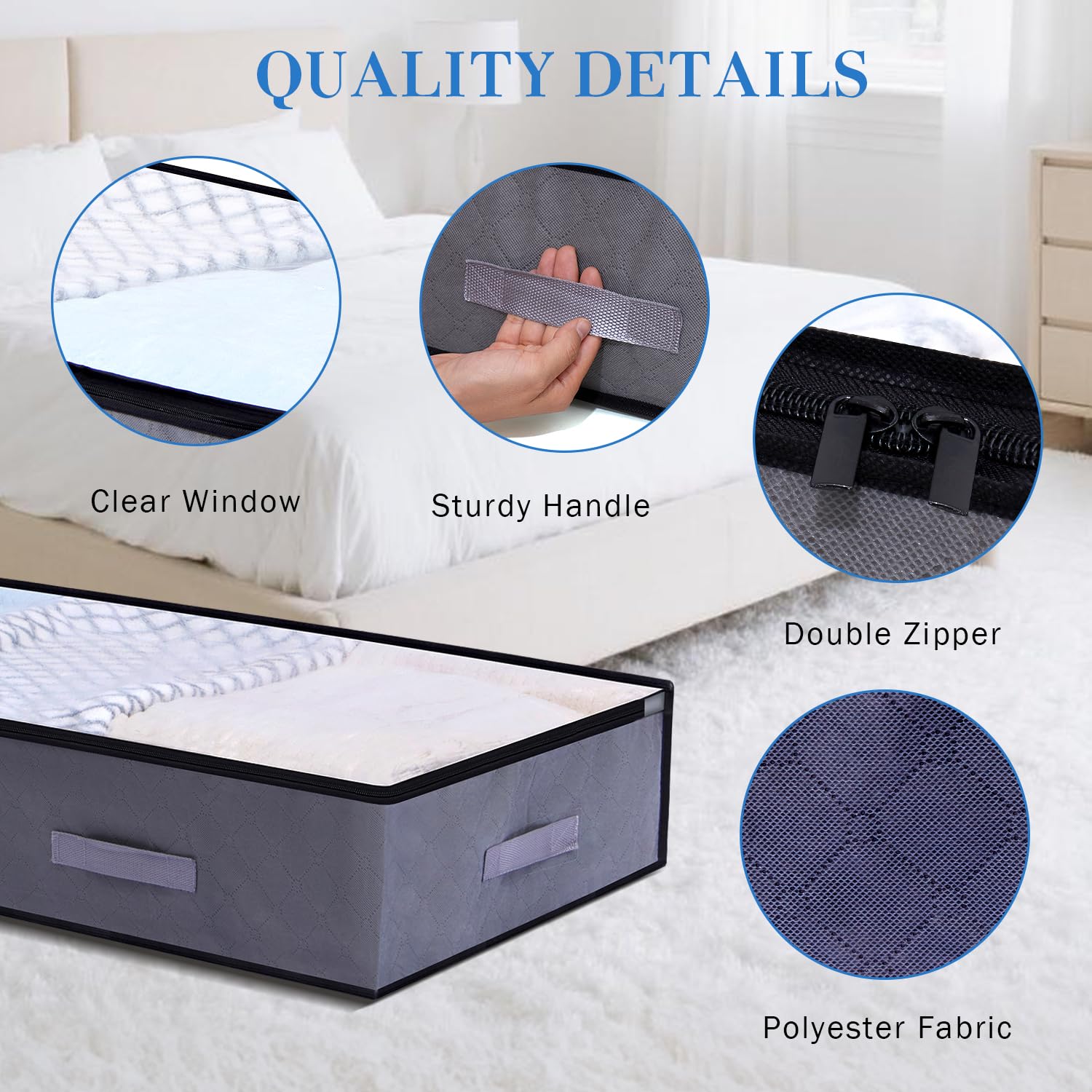 Nous vous offrirons le meilleur service jusqu’à ce que vous soyez satisfait. Lot 2 Sacs Pliables Non Tissé épais 2 Packs Sacs De Rangement Sous Lit, 90L Pliable Conteneurs De Vêtements Avec Couvercles Transparents Poignées De Fenêtre, Organisateur De Placard Boîtes Stockage Pour Literie, Vêtements, Couvertures Housse Rangement Vetement Se glisse facilement sous le lit pour ranger les vêtements de saison ou les objets inutilisés. Grande capacité : Chaque sac de rangement mesure 100 x 50 x 15 cm, pour une capacité de 90 litres. Grâce à son design compact, ce sac de rangement se glisse facilement sous n'importe quel lit de taille standard Matériau Non Tissé Épais - Matériau non tissé haute densité sélectionné, plus épais et plus résistant à l'usure que les sacs de rangement ordinaires. Ils sont également faciles à nettoyer. Sac de Rangement pour Vetement, 2PCS 90L Sac de Rangement pour Couette... Design plat, facile à ranger sous le canapé, facile à ranger les couvertures, les jouets, etc. Utilisez l'espace au fond de l'armoire pour ranger des vêtements ou des accessoires. Il suffit de les essuyer avec un chiffon humide si elles sont sales. Sac de Rangement Vetement 90L Lot de 2, Boîte de Rangement sous S'adapte parfaitement au fond du cintre, ce qui permet de garder la pièce propre et sans désordre. La boîte de rangement mesure 18 cm de haut et s'adapte à l'espace sous le lit, ce qui rend le rangement à la maison plus efficace.
