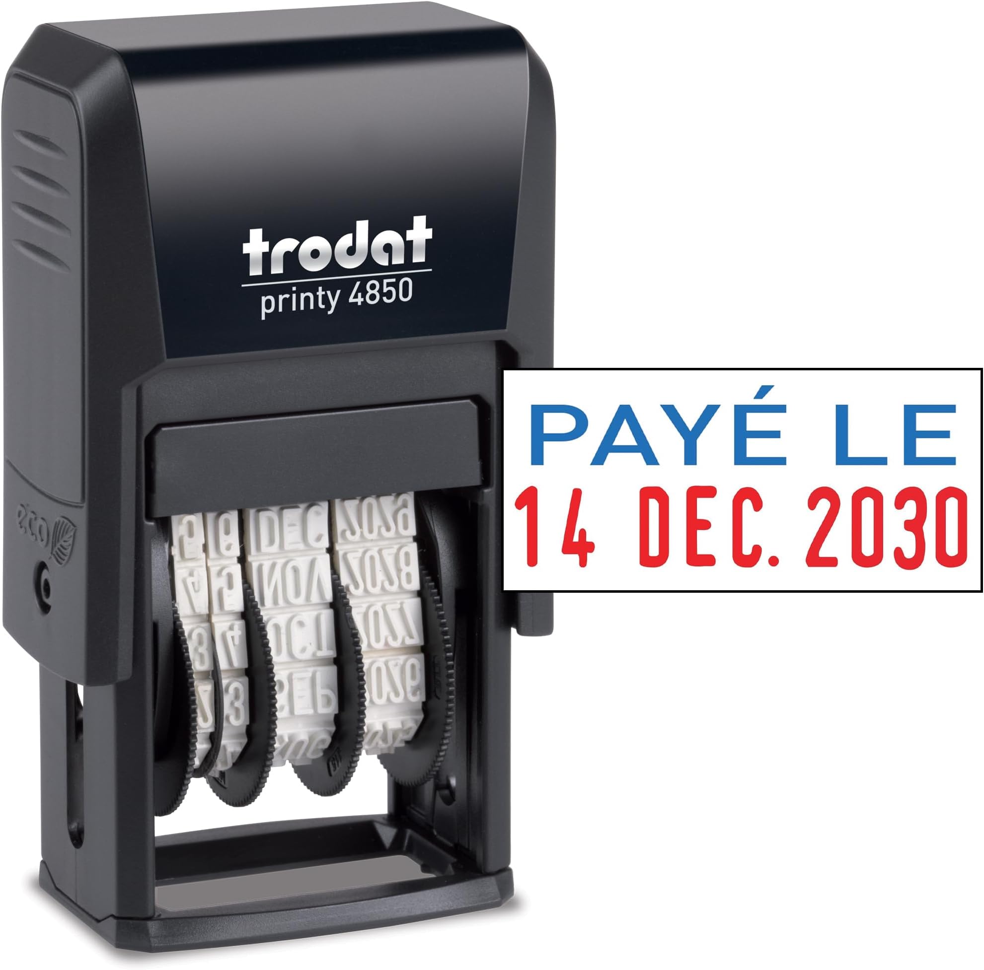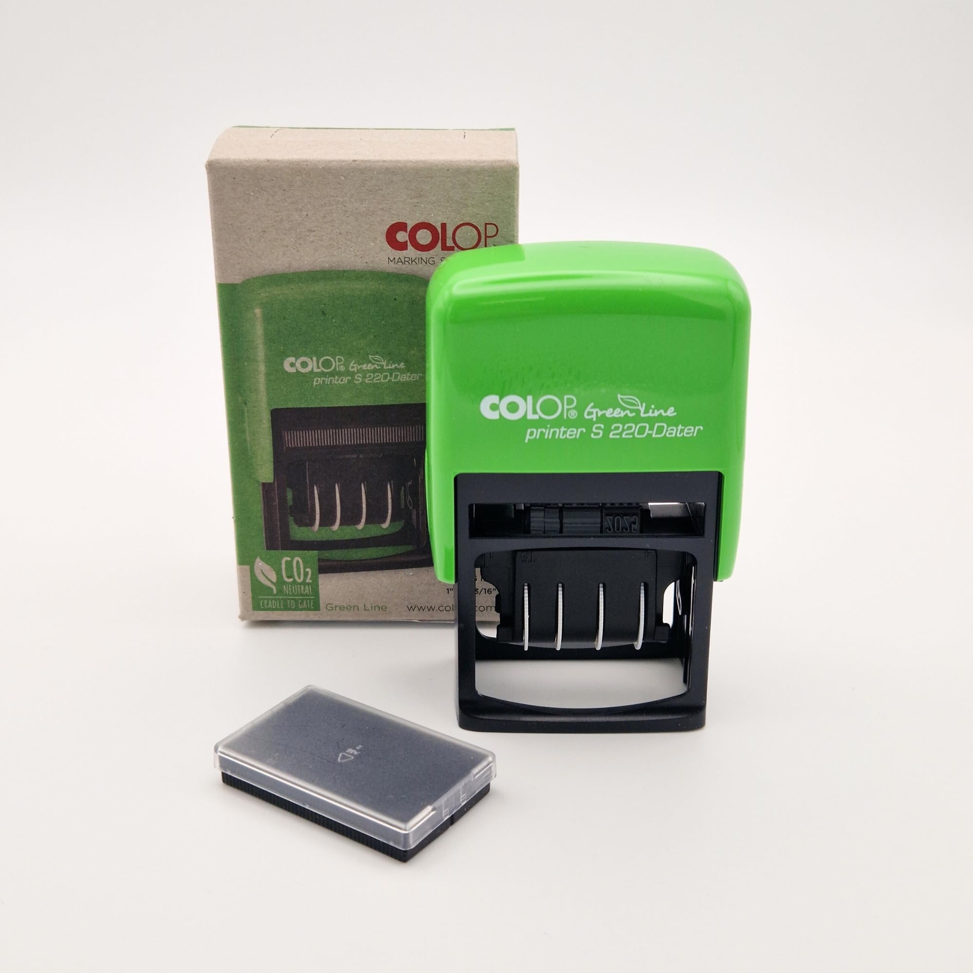 Tampon Date Tampon Colop Printer Q30 Avec Dateur. Tampon Carré Avec Dateur - Tampon Encre Tampon Tampon dateur Colop Classic Line 2000/5 - 5mm FR date française, mois en lettres, taille de l'impression: env. 25 x 4 mm, tampon encreur noir, cassette de rechange adaptée: E/200... Grâce à l'indication des mois et à un ruban annuel de 12 ans, il convient parfaitement à une utilisation quotidienne au bureau - robuste, écologique et facile à utiliser. Tampon auto-encreur à empreinte noire Tampon dateur auto-encreur pratique - Tamponne la date en caractères clairs de 4 mm de haut. Description du produit Le S 220-Dater est un tampon dateur pratique, auto-encreur, avec affichage de la date en français et hauteur de caractères claire de 4 mm, idéal pour les documents. La bande des mois est en français (par ex. Écologique & durable - Le tampon est composé d'au moins 63 % de plastique recyclé et contribue ainsi au développement durable. Le tampon encreur interchangeable (noir) permet une longue durée d'utilisation (tampon de rechange : E/200). Sous-famille Tampons automatiques français Modèle MOIS EN LETTRES Couleur du boîtier noir Couleur du coussin NOIR Taille de l'impression 25 X 4 MM Poids 0.08 Kg Longueur 7.00 cm Largeur 4.00 cm Hauteur 12.00 cm Références spécifiques EAN-13 9004362556015 MPN 171165 Categories shop à tampons Information sur fabricant COLOP...