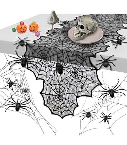 Chemin de Table,Nappe brodée en dentelle pour la maison, chemin de... Dimensions pratiques: Avec une longueur de 180 cm et une largeur de 45 cm, ce chemin de table s'adapte à la plupart des tables et ajoute une touche élégante à votre décoration Facile à utiliser: Léger et pliable, ce chemin de table est simple à installer et à ranger, ce qui en fait un accessoire pratique pour vos décorations de table d'Halloween Nappe Halloween Polyester Chemin De Table Avec Dentelle, Toiles Araigne, Dcorations De Table Halloween Decoration De Table Tissu effrayant: 1x chemin de table noir en dentelle avec des motifs détaillés de toile d'araignée – parfait pour créer une ambiance terrifiante lors de vos soirées Halloween Dentelle Chemin De Table Ovale Nappe Brodée Dentelle Napperons... Tissu effrayant: 1x chemin de table noir en dentelle avec des motifs détaillés de toile d'araignée – parfait pour créer une ambiance terrifiante lors de vos soirées Halloween Matériau de qualité: Fabriqué en 100% polyester, ce chemin de table est durable et facile à entretenir – idéal pour une utilisation répétée lors de vos fêtes d'Halloween Dimensions pratiques: Avec une longueur de 180 cm et une largeur de 45 cm, ce chemin de table s'adapte à la plupart des tables et ajoute une touche élégante à votre décoration Idéal pour Halloween: Parfait comme décoration de table pour vos fêtes d'Halloween, il crée une atmosphère effrayante et festive – convient également pour d'autres événements à thème Facile à utiliser: Léger et pliable, ce chemin de table est simple à installer et à ranger, ce qui en fait un accessoire pratique pour vos décorations de table d'Halloween Ensemble de décorations d'Halloween en dentelle noire, toile d'araignée, rideau, chemin de table, cheminée, écharpe, décoration de fête