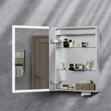 Armoire Toilette Miroir Salle De Bain Avec Eclairage Armoire Salle De Bain STARLEAD Armoires De Salle De Bain Avec Miroir Avec Eclairage 50X70 CM, 3 Couleurs De Gradation, Anti Buée, LED Meuble Haut Salle étagère Verre Réglable Miroir Anti-buée Interrupteur Tactile Armoire Salle De Bain Différentes Prises électriques Et Prises électriques Illustration de Vecteur - Illustration du... 【Station de recharge et fonction anti-buée】 Cette armoire de salle de bain dispose d'une prise de rasoir à l'intérieur pour recharger les rasoirs électriques ou les brosses à dents. 【Support pour sèche-cheveux】 Cette armoire de salle de bain avec miroir est livrée avec un support pour sèche-cheveux. Une fois vos cheveux secs, il vous suffit de suspendre le sèche-cheveux à son support pour l'utiliser et le ranger facilement. 【3 modes d'éclairage et réglage de la luminosité】 L'armoire de toilette avec éclairage LED peut être réglée librement entre 3 températures de couleur (IRC > 90) : lumière chaude (3000 K)/lumière neutre (4500 K)/lumière froide (6000 K). La hauteur de l'étagère peut être réglée librement afin d'utiliser au mieux l'espace vertical. 【Interrupteur tactile】Remarque : la charnière souple peut être ajustée si la porte de l'armoire n'est pas bien fixée à la réception. Cette armoire de toilette avec miroir éclairée par LED est commandée par toucher. EN STOCK : AquaWise Armoire de Toilette Murale avec Miroir LED, Anti-buée, Variateur LED 3000–6500K Gris Clair, MANOEUMC026070 pas cher. Livraison rapide partout en France