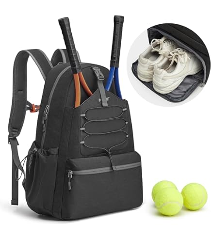 Sac Badminton Squash Padel DSLEAF Sac à Dos De Tennis Pour 2 Raquettes, Avec Espace à Chaussures Ventilé Séparé Pour Tennis, Pickleball, Badminton, Raquette De Squash Et Accessoires Sac De Tennis Sac à Raquettes de Tennis Grande Capacité 3-6 Pcs Sac à Dos de DSLEAF Sac à dos de tennis pour 2 raquettes, sac de tennis avec espace... 【Sac de tennis parfait】 Notre sac à dos de protection de raquette de tennis est fabriqué en PU pour résister aux rigueurs du sport en combinant durabilité et look élégant. La taille est de 13 « L x 5,5 » L x 19,3 « H. 【Sac à dos de tennis multi-poches】 Il y a deux poches zippées de chaque côté du sac de tennis, qui peuvent contenir des bouteilles d’eau et des parapluies. Sac pour 2 raquettes de tennis, sac à dos pour raquette de tennis, sac à dos de pagaie de tennis, squash, raquette de badminton, sac de transport pour raquette de tennis, pickleball, badminton, squash 【Sac cadeau spécial】 Ce sac à dos de tennis/padel est un cadeau parfait pour les amis, il est bon pour le vélo, les voyages, le pique-, la randonnée, les déplacements, les excursions en plein air, le camping et plus encore ! 【Utilisation polyvalente】 Il est conçu comme un sac de tennis professionnel et convient également à diverses activités de plein air telles que le padel, le pickleball, le squash, le badminton ou comme sac à dos de voyage. Cela en fait le cadeau de vacances parfait pour les membres de la famille. Ytonet Sac à dos de tennis pour homme et femme avec 2 raquettes avec poche isolante et compartiment à chaussures ventilé : : Sports et Plein airCet article a été testé et peut être envoyé sans risque dans son emballage d'origine pour éviter les emballages superflus. Depuis 2015 nous avons réduit le poids des emballages d'expédition de 43% en moyenne - plus de 3 millions de...