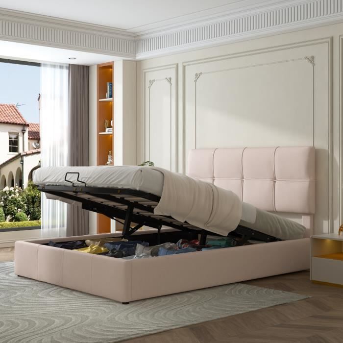 Vous pouvez ranger vos couvertures, oreillers, draps ou jouets dans la grande boîte de rangement située sous le sommier à lattes rabattable. Elle ajoute une touche moderne et magique à votre espace de sommeil, transformant votre lit en un élément design à part entière. Lit Coffre 140x200 Lit Double Rembourré 140x200cm Avec Espace De Rangement Et Tête De Lit Lit Moderne Velours Beige éclairage Ambiant Lit coffre double 140x200, lit rembourré avec espace de rangement... Matériau de haute qualité : lit double LED fabriqué en matériau velours confortable, ce matelas est confortable au toucher et facile à nettoyer. La tête et le pied de lit sont sobres mais élégants et confèrent à ce lit rembourré une touche moderne. Que ce soit pour créer une ambiance douce et reposante pour la nuit, ou une lumière plus dynamique pour des moments de détente, vous pouvez ajuster la couleur selon vos envies. Remarque: le lit comprend des instructions de montage et des outils de montage, facile à assembler ; le lit rembourré est expédié en 2 colis, ces 2 colis peuvent ne pas arriver le même jour, soyez patient, si vous avez des questions, vous pouvez nous contacter à à tout moment nous Avec une surface recouverte de velours doux et une couleur beige apaisante, ce lit ajoute une touche de modernité et d'élégance à votre chambre. Il est le complément idéal pour votre chambre à coucher ou votre chambre d'amis. Ce lit est idéal pour les petites maisons ou les appartements à l'espace limité et offre un espace de rangement supplémentaire pour la chambre à coucher, pratique pour le stockage. Fixée de manière simple et rapide grâce à du velcro, cette LED offre sept couleurs vives et changeantes. Lit moderne avec éclairage LED] - Ce lit arbore un design élégant en similicuir, illuminé par un éclairage LED raffiné. Les lumières sont contrôlées par une télécommande à 24 touches, offrant 4 modes de changement de couleur automatique et 16 couleurs au choix.[Grande capacité de charge] - Le cadre de lit en métal, doté de 24 lattes doubles, supporte jusqu'à 300 kg, prévenant... Il offre également un maximum de confort pour rendre chaque moment de repos très confortable. Assemblage facile:Le lit est livré avec des instructions détaillées et des pièces numérotées, ce qui rend l'assemblage simple et accessible à tous. Lit rembourré pour adultes et adolescents, beige Lit Coffre Double 140x200 cm avce LED et USB, Tête de Lit en Forme de