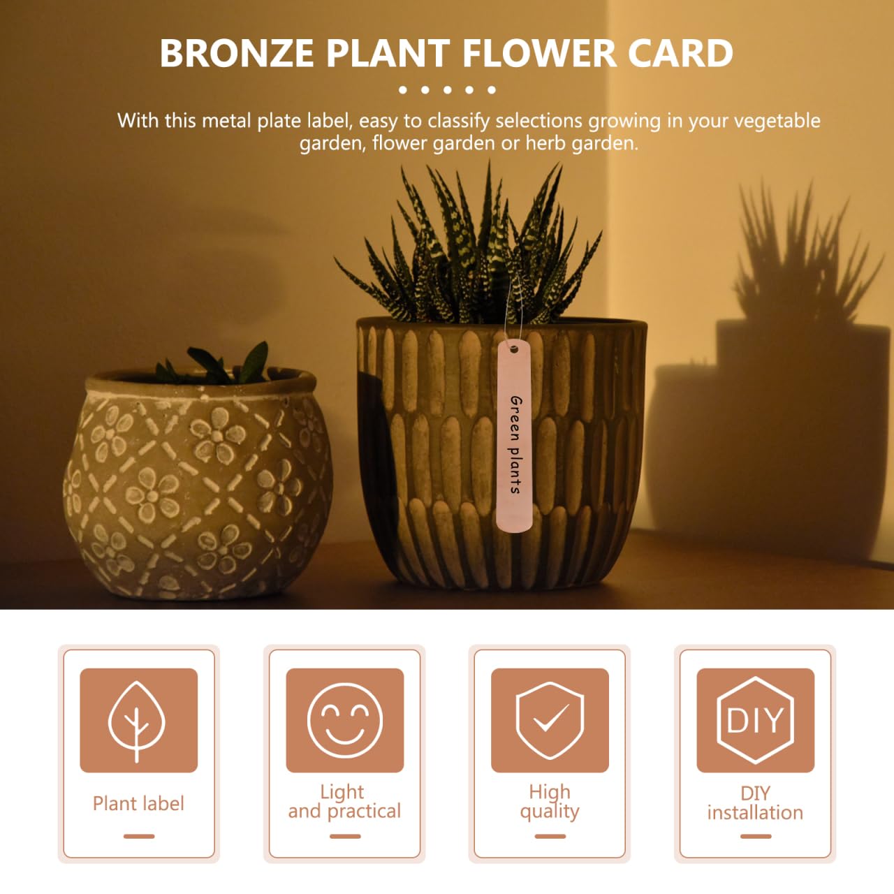 Marqueurs de semis : ils peuvent être utilisés comme décoration de jardin, ou comme étiquette de classification des plantes et des fleurs, étiquettes de jardin en métal Accessoires Décoration Jardin Résistants Intempéries Yardwe Lot De 30 étiquettes En Cuivre Pour Plantes Avec Fils De Suspension, 60 Marqueurs De Jardin Pour Parterre De Fleurs, Balcon, Potager, 12 X 2 Cm Décoration Jardin Rustique Contenu du forfait 10 étiquettes pour plantes avec Caractéristiques -Informations sur le produit : Étiquette de la plante de cuivre -Couleur : étiquettes métalliques marron foncé -Matériel : médiators et étiquettes -Taille : 11,50 x 2,00 x 0,50 cm/4,52 x 0,79 x 0,20 pouces étiquettes métalliques pour l'extérieur Cette étiquette de jardinage au style moderne est facile à utiliser et durable. 100 Pieces Marqueurs et étiquettes de Plantes en Plastique de Type T, 6... Étiquettes de jardin Ces étiquettes pour plantes sont fabriquées dans un matériau durable et robuste, durable et résistant à l'usure, adapté à une utilisation intérieure et extérieure. Étiquettes métalliques pour l'étiquetage Faciles à écrire. WE11755-Marqueurs de plantes en plastique réutilisables. étiquettes de... -Peut non seulement être utilisé comme étiquette de jardinage, mais peut également être utilisé comme étiquettes d'identification d'arbre de décoration. -Excellents accessoires pour les jardins et les fleuristes, et peuvent également être utilisés dans les restaurants et les supermarchés étiquettes de jardin en métal. Étiquettes de jardinage Présente une conception qui permet une écriture et un étiquetage sans effort, ce qui la rend pratique pour les utilisateurs de niveaux de compétence Benssey 90 Paquets 10 Pouces Haute Plaque de Cuivre en Métal Étiquettes de Plantes de Jardin Poteau Étiquettes Réutilisable Plantation Jardinage Marqueurs -Nos étiquettes de plantes sont fabriquées en cuivre robuste, durable, sûr, portable et simple à utiliser. Marqueur de jardin en métal : cette étiquette de jardinage est conçue dans un style moderne, facile à utiliser et durable.