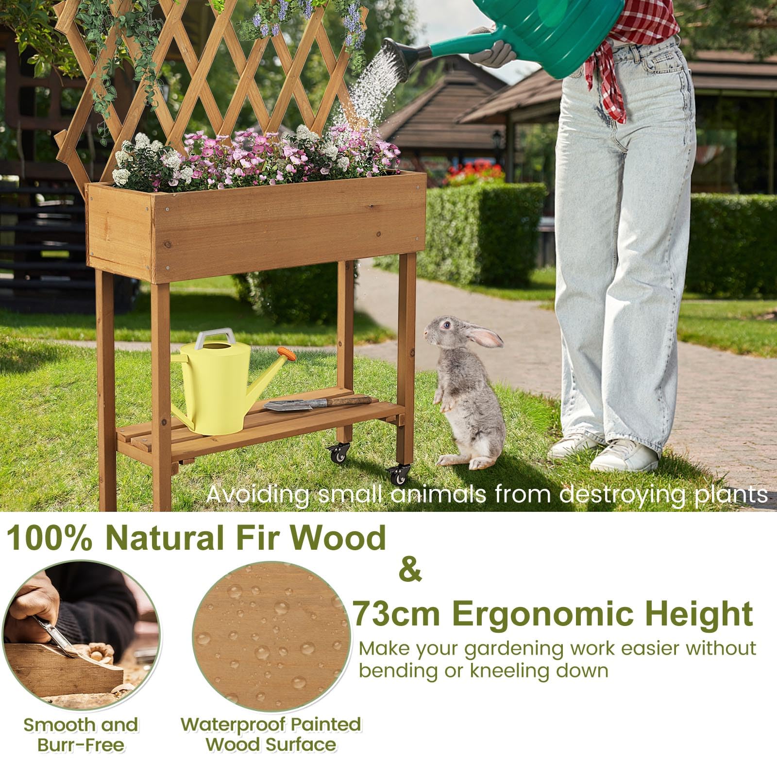 Hauteur de travail ergonomique : par rapport aux méthodes de plantation traditionnelles, la hauteur de travail du parterre de jardin est bien conçue, ce qui vous permet de cultiver plus facilement un potager sans avoir à vous baisser, en particulier pour les personnes âgées. Sa profondeur suffisante offre un bon espace de culture et une filtration naturelle pour les racines des plantes. Le parterre de fleurs est fabriqué en bois de sapin, inodore et durable. Sa profondeur suffisante offre un bon espace pour les racines des plantes à pousser, de sorte que les plantes reçoivent les meilleures conditions de croissance et les nutriments. Donne à votre maison une touche naturelle. Aide à la croissance des plantes : le fond de cette jardinière a de nombreux petits trous qui aident à arroser les fleurs. De plus, le design ouvert de l'étagère permet aux plantes de bien faire la photosynthèse Le manuel d'utilisation fourni explique les étapes de montage en détail et l'utilisation est simple et claire. Grand espace de croissance : le design de la jardinière surélevée permet une plus grande surface de croissance pour une variété de légumes et de plantes. Description du produit : Cette jardinière surélevée de jardin vous offre une jardinière moderne à l'aspect bois naturel. Jardiniere Exterieur Grande Taille HOMASIS Jardinière Avec Grille En Bois Massif Avec Treillis, Jardinière Jardinière Balcon Terrasse Jardinière avec Treillis en Bois avec Étagère à 2 Niveaux, Lit de... Montage et entretien faciles : cette jardinière est non seulement facile à monter, mais aussi facile à entretenir. Matériau de qualité supérieure pour le parterre de fleurs : ce parterre de fleurs est fabriqué en bois de sapin sélectionné pour garantir sa durabilité et sa qualité constante. Il n'est pas nécessaire de se pencher et de faire des efforts, facile à planter et à manœuvrer. En outre, l'entretien quotidien est très simple. Jardinière à 2 Niveaux avec Treillis en Bois de Sapin 45,5x36x113 CM Vous n'avez pas à vous soucier de l'érosion du soleil et de la pluie lorsque vous l'utilisez à l'extérieur, car il peut facilement résister à toutes sortes de conditions météorologiques défavorables. L'étagère inférieure permet de ranger des outils tels que des arrosoirs et du compost Sapin massif, bonne résistance aux intempéries, grande capacité de charge. Hauteur de travail idéale pour travailler confortablement dans le jardin Caractéristiques techniques : Couleur : naturel/jaune clair/marron rougeâtre/gris Matériau : bois de sapin Capacité de charge : 80 kg (jardinière) + 30 kg (étagère) / 100 kg / 50 kg Dimensions : 120 x 55 x 90 cm / 92 x 41 x 81 cm / 120 x 43,5 x 51 cm / 120 x 60 x 82 cm / 120 x 60 x 81 cm (L x l x H) Poids : 12 kg / 7 kg / 8 kg / 10 kg / 13 kg Pièces : 1 plate-bande surélevée (avec étagère/sans étagère). Convient pour terrasse, balcon, véranda, jardin, etc.