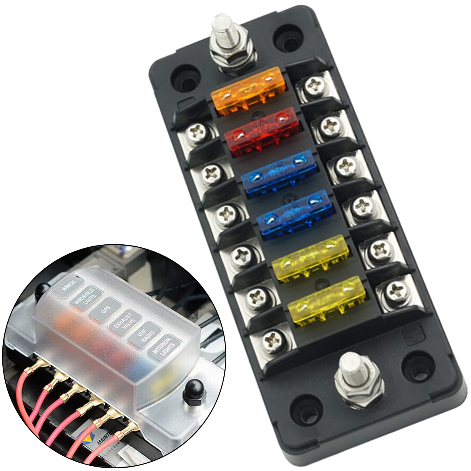 Indicateur d'avertissement sécuritaire LED : Lorsque le courant est trop élevé, la fusible va sauter et la lumière d'avertissement rouge LED va s'allumer immédiatement. Que vous soyez sur la route,sur l'eau ou hors des sentiers battus,la fiabilité de votre système électrique peut être déterminante Le bloc-fusibles 12V 6 voies est conçu pour vous offrir une tranquillité d'esprit en offrant un moyen fiable et sûr de gérer et de protéger les circuits de votre véhicule Ce panneau à fusibles 12 V vous permet de rester organisé grâce à 6 circuits distincts, clairement identifiés et faciles d'accès. Pourquoi choisir US Chelhead ? Durable et fiable pour toutes vos aventures En empilant un fouillis de fils et de blocs de fusibles marins sur les bornes de votre batterie, un kit de bloc de fusibles / bus de terre 12v vous offre 12 fusibles dédiés et 12 emplacements de mise à la terre pour garder tous vos fils propres et organisés Rendre le câblage plus ordonné : Le bloc de fusibles à 6 circuits est compatible avec les fusibles ATC/ATO (moyenne charge), et chaque vis de borne positive a une vis négative, ce qui simplifie le processus de câblage des appareils électroniques dans les véhicules ou à bord, et est une solution parfaite pour organiser et protéger les complexes lignes de circuit basse tension dans les véhicules. Plus besoin de chercher des fusibles spéciaux : il suffit de choisir la bonne taille, de les insérer et c'est parti. Description du produit La solution idéale pour des systèmes électriques sûrs et organisés Protection Circuit Automobile Bloc De Fusibles étanche à 6 Voies Avec Indicateur LED Et Boîtier Marin Coupe Circuit JIN-Bloc de fusibles à lame à 6 voies Porte-fusible marin DC 12‑32V... Le bloc de fusibles pour bateaux ne cause pratiquement aucun problème tel que la rupture, la déformation, la combustion ou la court-circuit, et est plus durable. La protection des fusibles peut éviter les graves dangers pour la sécurité causés par l'incendie d'appareils électriques ou de véhicules. Vous pouvez rapidement trouver le défaut et facilement remplacer la fusible qui a sauté. Application universelle :Ce bloc de fusibles à 6 circuits 12 volts est largement utilisé dans les voitures, les camions, les bateaux, les camions-citernes, les navires, les SUV, les yachts, les RV, les fourgons, les bateaux, etc. BLOC DE FUSIBLES 6 Voies Avec Bus Bloc De Fusibles Automobile EUR 15,55 Durable et ignifuge : Ce bloc de fusibles automobile est fabriqué en matériau PBT ignifuge et écologique, qui a une forte résistance mécanique, une bonne isolation, une résistance à la chaleur et une ignifugation. Fusibles à lame standard pour un entretien facile Ce panneau de fusibles marin est compatible avec les fusibles automobiles à lame standard, largement disponibles et faciles à remplacer. Ce bloc à fusibles est conçu pour durer.