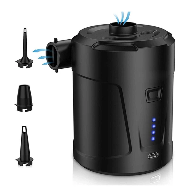 Pompe à air - GAROSA - Mini Pompe à Air Portable - Gonflage puissant Compresseur d'air sans fil sans balai, pompe à air portable haute... Pompe Avec Lumière LED Pompe À Air Électrique Avec Lanterne Led, Pompe À Air À Remplissage Pompe Rechargeable Avec écran LED Affichage LED intelligent : la pompe à air électrique portable dispose d'un indicateur LED intelligent qui indique le niveau de la batterie. IMPRESSION D'AIR MAXIMALE DE 4KPA: Cette petite pompe à air est équipée d'un moteur puissant qui fournit une pression d'air maximale de 4 kPa et une puissance de sortie de 20 W. Cette mini pompe à air Udbrud tient dans la poche mais gonfle tout ! Rechargeable USB (batterie 2400mAh), elle dure 15 min en continu. 4 buses pour matelas... Protection intelligente pour une manipulation et une surveillance faciles La pompe à air électrique permet de gonfler et de dégonfler rapidement en appuyant sur un bouton et offre une performance rapide et efficace pour tous vos besoins gonflables. Mais elle n'est pas adaptée pour gonfler des ballons, des ballons de basket ou des pneus 4 buses et design compact : légère, cette pompe à air électrique est facile à transporter et pour les activités de plein air, le camping et le gonflage des matelas gonflables, des bouées, des balles de yoga, des flotteurs de piscine et des sacs de rangement sous vide.