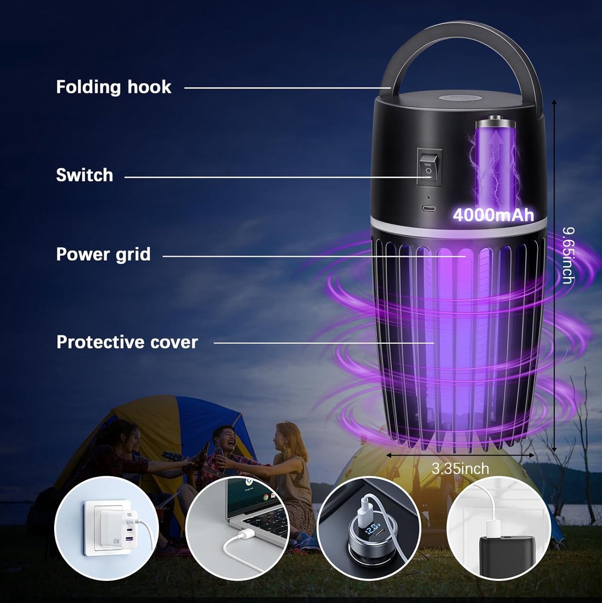Les moustiques attirés par les rayons ultraviolets de direction à 360 degrés les zapperont immédiatement avec un choc électrique 110-220V. Description du produit Bienvenue ! Lampe anti-moustiques, anti-insectes électrique à lumière UV, 360 °, piège à insectes puissant pour intérieur et extérieur S'il vous plaît amusez-vous. La lampe anti-moustiques vous offre une méthode sûre et efficace pour résoudre les problèmes de parasites, sans produits chimiques, sans danger pour les humains, les animaux domestiques et l... Avec un design de travail ultra silencieux, ce bug zapper électrique d'extérieur ne perturbera pas votre repos et votre sommeil. Spécification - Puissance : 5W - Taille de l'emballage : 10,5*20,8cm - Capacité de la batterie : 4000mAh -Temps de recharge : 3~4 heures - Intervertir : Deux modes de fonctionnement - Zone effective : 50-120㎡ - Tension : 110v-220v - Poids : 0,38 kg Paquet 1* Anti-moustique électrique 1*Câble de recharge USB Anti Moustique Le Plus Efficace Avec Led,4200V 15W Uv Tueur D'Insectes Électrique Lampe Anti Moustique Filets de sécurité externes pour éviter les chocs électriques, sûrs et respectueux de l'environnement. Description du produit 100% sûr pour les personnes et les animaux domestiques, fonctionne sans utiliser de produits chimiques dangereux, n'émet pas de fumées nocives et ne nuit pas à l'environnement. Efficace dans la zone de couverture 50-120㎡. ☪【Batterie longue durée rechargeable par USB et 4000 mAh】 La lampe anti-moustiques est équipée d'un câble de chargement USB, qui peut être rechargé. ☪【Utilisation intérieure et extérieure】 Équipé d'une poignée portable rotative à 90 degrés, vous pouvez l'accrocher à une corde ou à une branche ou à l'envers, comme des lampadaires, des lampes de bureau, en particulier pour les jardins, les barbecues et les piscines. Nous nous ferons un plaisir de vous aider !, Conseils 1., Gardez l'anti-moustique électrique au sec., 2., placer les pièges à moustiques dans un endroit sombre ou peu éclairé 3., Allumez la lampe électrique avant de dormir (au moins 3 heures) pour mieux tuer les moustiques., 4., Placer les pièges à une hauteur d'environ 1 m, de telle sorte que la couverture lumineuse à haute altitude soit large et que l'effet d'utilisation soit plus idéal., 5., garder l'anti-moustique électrique hors de portée des enfants 6., faites tourner le filet de protection vers la gauche, pour ouvrir et nettoyer l'appareil. ☪【Puissant et efficace】Notre lampe anti-moustiques utilise une lumière ultraviolette de 365 nm pour attirer les moustiques et les insectes. MODE 2 EN 1]Notre lampe anti-moustique dispose de 2 modes, non seulement une lampe anti-moustique mais également une veilleuse chaude. Ces deux modes peuvent être commutés selon vos besoins. [FONCTIONNEMENT SÛR ET SILENCIEUX]Une méthode 100 % physique tue les moustiques, les mouches, les et les insectes, non toxique, sans produits chimiques, sans danger pour les femmes enceintes... Service à la clientèle Si vous recevez des produits défectueux, veuillez contacter notre service clientèle. Le design exquis peut également décorer votre maison et vous pouvez les déplacer à tout moment. Tue-mouche électrique Lampe Anti Moustiques UV Rechargeable - 2 En 1 - 4000mAh - Pour Intérieur/Extérieur - 120m² Lampe Insectes 2 En 1 Intérieur Extérieur