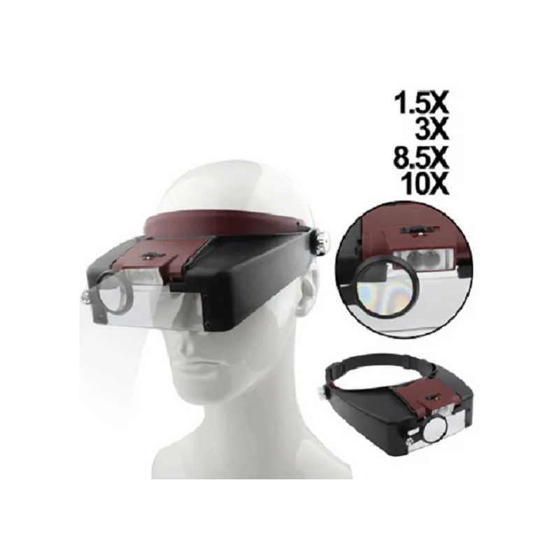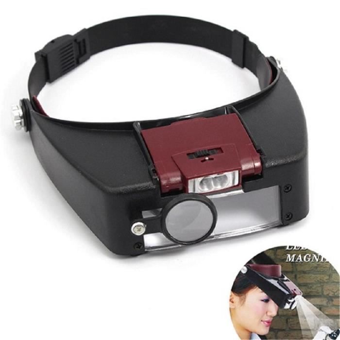 La lumière LED peut également être utilisée comme une source de lumière amovible car elle contient une base magnétique. Dimensions de la loupe : 95 x 42 mm. Alimentation : 3 piles AAA (non fournies). La loupe frontale comporte un bandeau ajustable avec un bouton à libération rapide qui permet d'ajuster facilement le bandeau à différentes tailles de têtes. Contenu : 1 paire de lunettes de lecture. ZVD Loupe serre-tête, loupe professionn à double objectif pour bijoux... 5 verres interchangeables (grossissement 1 x, 1,5 x, 2 x, 2,5 x, 3,5 x) pour répondre à vos différents besoins - Loupe mains libres idéale pour les horlogers, dentistes, électriciens, modélistes, bricoleurs. Une fois clipsés sur la loupe frontale, les verres peuvent s'incliner jusqu'à un angle de 85 degrés si le grossissement n'est pas nécessaire. Fiche technique : Matériaux : verres en acrylique, acrylonitrile butadiène styrène, métal. Loupe Pour Bijouterie Bricolage Loupe Frontale Avec Lumière LED - Pour Lecture, Travaux Manuels Loupe Mains Libres 5 Lentilles Loupe, Avec Réparation De La Lampe Tête De Loupe Portant Des Lunettes... Elle peut également s'adapter à des lunettes de lecture. Elle est idéale pour les bijoutiers, les collectionneurs de pièces de monnaie et de timbres, les amateurs, les fabricants de montres, les petits appareils électroniques, les loisirs créatifs, la couture, le tricot, la mécanique, la soudure, et de nombreux autres activités qui nécessitent une vision précise. La loupe frontale est idéale pour tous les loisirs, les travaux manuels, pour lire des livres, des magazines, des journaux, la modélisation, la création de bijoux et d'autres tâches qui exigent une vision précise. Loupe frontale avec 2 LED ultra lumineuses - Fonctionne avec 3 piles AAA (fournies) - Améliore la vision de jour comme de nuit et peut fonctionner pendant de nombreuses heures. Loupe Réparation électronique Lampe Loupe Jubor 15X/10X - LED 5 Loupe frontale légère, confortable au design ergonomique. 1 étui de rangement pour lunettes., 1 bandeau élastique. Loupe frontale Wallfire mains libres avec 5 verres interchangeables en acrylique coupés avec précision : grossissement 1,5 x, 2 x, 2,5 x et 3 x. 5 verres en acrylique : grossissement 1 x, 1,5 x, 2 x, 2,5 x, 3,5 x.