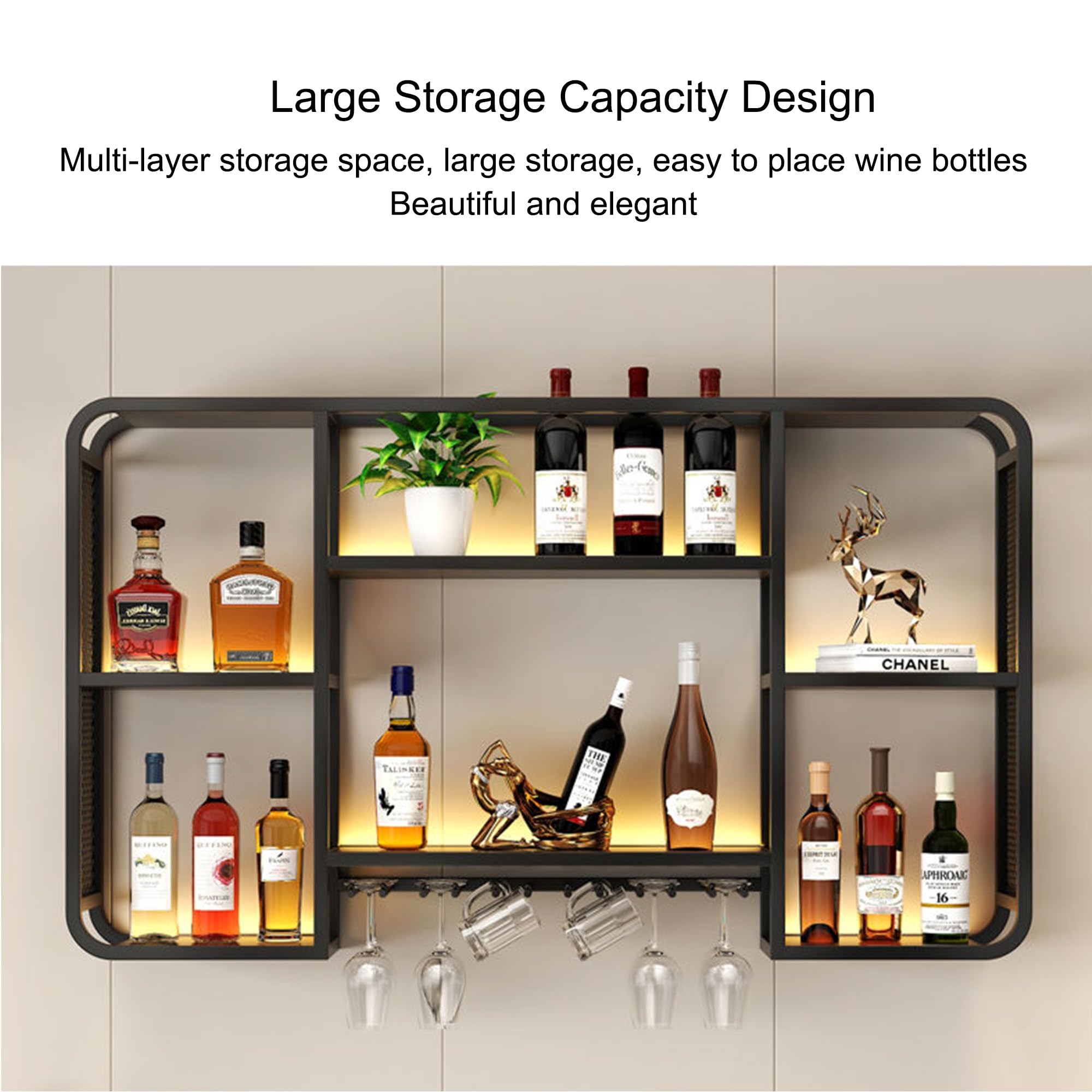 Casier à Bouteilles Stylé Range-Bouteille Étagère avec Tiroir Emplacements pour 16 Bouteilles de Casier à Bouteilles Design Porte Range Bouteille Mural Avec Lumière Rangement Bouteille Casiers à Bouteille Etagere Cuisine Murale Meuble Bar Mini Bar Avec Porte Verres Suspendu Pour Comptoir De Bar Salon Cuisine Cave(Gold,39.3 Support Bouteilles Mural Fer Étagère De Rangement En Bois Pour Bouteilles De Vin Et Liqueur... Belle conception de lumière ambiante : l'etagere murale cuisine comprend une bande lumineuse, la lumière est douce et exquise, faisant écho aux produits affichés, se concentrant sur les expositions de casiers à vin, pour améliorer l'effet d'affichage LIBRNTY 2 PCS Porte Bouteille Mural,casier à vin de comptoir... Large gamme d'utilisations : l'rangement bouteille est de conception simple, facile à intégrer dans plus de scènes, adaptée à l'organisation et à la décoration de votre salle à manger chambre, cuisine, salon, couloir, cave à vin, bar ou débarras etc. Installation facile : le casier à bouteilles est facile à installer, les composants de base ont été équipés pour vous, les lignes droites du cadre sont un jeu d'enfant pour s'aligner parfaitement et l'opération est simple