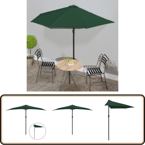 Matériau: Aluminium Métallique Parasol Demi Lune VidaXL Parasol De Jardin Avec Mât En Bois Vert 400x273 Cm, Parasol Demi Parasol Balcon Inclinable Nombre de Personnes Recommandé pour l'Assemblage: 1, SKU: 42003268, EAN: 8721158856180 Dimensions: 150 x 294 x 223 cm (l x L x H) Livraison Contient: Cadre de parasol, toile, lumières LED 【 Accoudoirs Ajustables:】 Ajuste les accoudoirs pour un max de confort, trouvant ta position de détente idéale quand il fait beau. Parasol de jardin à 3 niveaux avec mât en aluminium noir 2,5 m Accoudoirs Ajustables: Ajuste les accoudoirs pour un max de confort, trouvant ta position de détente idéale quand il fait beau. Fini: Revêtement en Poudre Dimensions Efficaces: Avec 150 cm de large et 294 cm de long, ce grand parasol donne beaucoup d'ombre pour toutes tes activités en extérieur., Couleur: Vert , Forme: Autre Hauteur du Poteau: 223 cm, Marque: vidaXL 【 Éclairage LED Élégant:】 Avec des guirlandes lumineuses sur chaque mât, créant une atmosphère sympa pour les soirées. Ce parasol d'extérieur est parfait pour créer de l'ombre et vous protéger des rayons UV nocifs. Fabriquée en polyester anti-UV et anti-décoloration, le tissu de parasol vous ofe une protection optimale contre le soleil et est facile à nettoyer Parasol de jardin double avec mât en acier vert 600 cm - Parasol Jardin... C'est un super ajout à tout balcon, véranda, ou terrasse, offrant à la fois fonctionnalité et style, parfait pour des retrouvailles décontractées ou des dîners en extérieur. Éclairage LED Élégant: Avec des guirlandes lumineuses sur chaque mât, créant une atmosphère sympa pour les soirées. Intérieur/Extérieur: Extérieur Uniquement Ce parasol de jardin est exactement ce qu'il te faut pour créer un coin d'ombre tout en apportant un peu de style avec son look élégant.