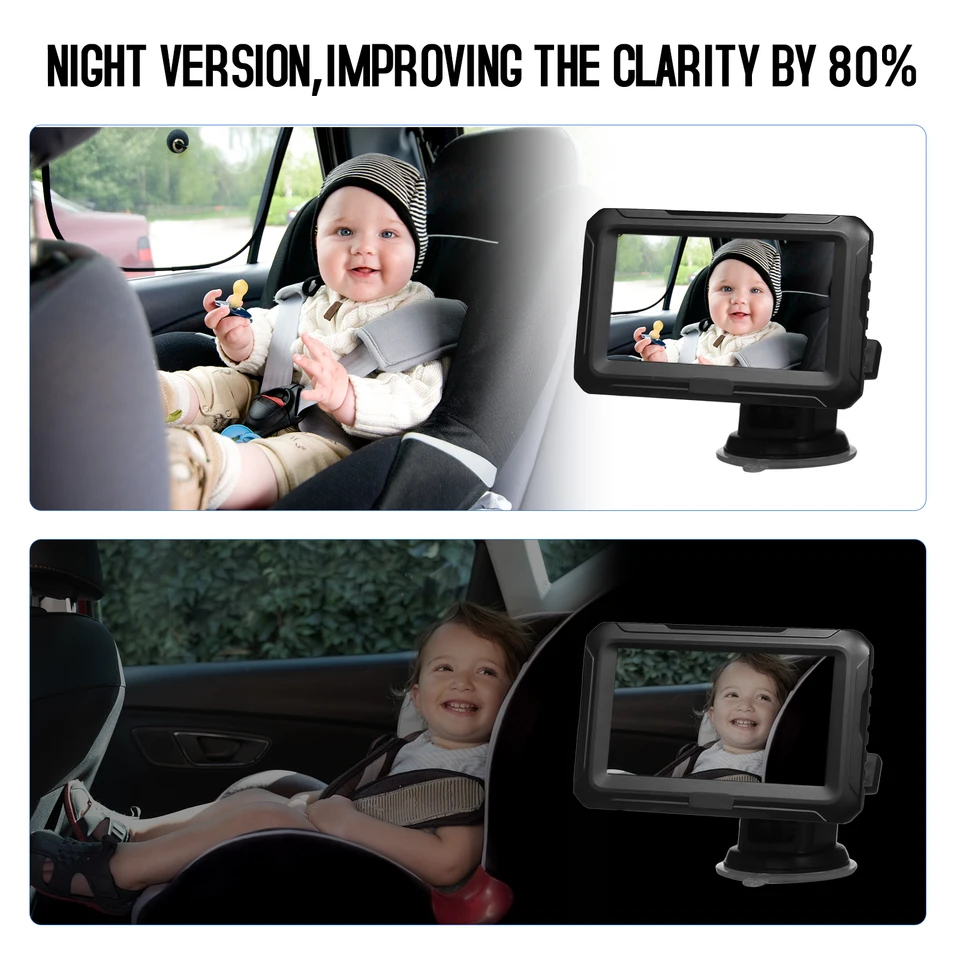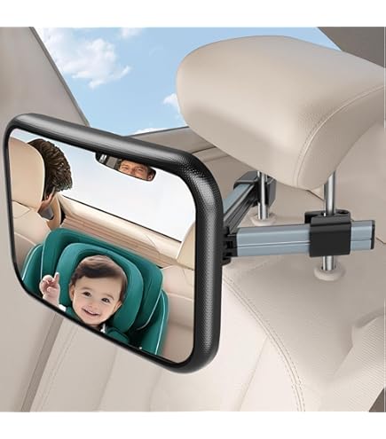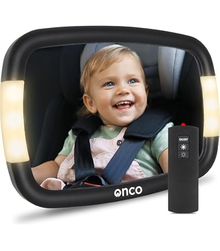 Sièges auto et accessoires Bébé et Puériculture Miroir Auto Bébé Rétroviseur de Rotation à 360° et vue panoramique : le rétroviseur de voiture révolutionnaire pour bébé tourne à 360° avec son système de billes rotatives, tandis que son miroir convexe à 175° offre un champ de vision exceptionnel. Surveillance Bébé Arrière Rotation 360 Siège Arrière De Voiture Avec Miroir De Sécurité Pour Bébé Avec Lumières LED Miroir Bébé Rotation 360° Télécommande Le contrôle ultra sensible permet de régler facilement la luminosité et les modes d'éclairage pendant que vous vous concentrez sur la route Pour y parvenir, un miroir bébé pour voiture s'impose comme un accessoire incontournable. Non seulement ces miroirs permettent de surveiller votre enfant à l'arrière, mais ils contribuent également à réduire les distractions au volant, ce qui augmente la sécurité sur la route miroir voiture bébé siège arrière - Télécommande éclairage LED... Le support robuste garantit un maintien sûr, même sur les routes cahoteuses. Batterie longue durée de 2000 mAh : contrairement aux modèles avec piles AAA, notre rétroviseur de voiture pour bébé dispose d'une batterie au lithium rechargeable écologique (2 à 3 jours d'autonomie). Ne convient pas aux appuie-têtes fixes. Idéal pour surveiller en toute sécurité votre bébé sur le siège arrière Support fixe pour une adhérence maximale : le siège arrière de la voiture de bébé est fixé à l'appui-tête avec une solution de maintien stable. Il dispose d'une veilleuse automatique (s'éteint après 30 secondes) et est livré avec une télécommande pour un contrôle facile.