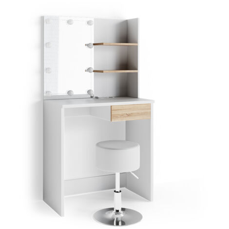 Pour éviter que ce meuble ne bascule, il faut qu'il soit ancré au mur. DIMENSIONS : La Coiffeuse avec miroir led et tabouret mesure Largeur: 80 cm, Hauteur: 146,5 cm, Profondeur: 40 cm. Toutes les tailles détaillées sont indiquées... Cette coiffeuse offre non seulement beaucoup despace et de style, mais aussi un miroir LED et un tabouret confortable pour votre ultime rituel de beauté. A conserver pour une consultation ultérieure., Lire attentivement !, DANGER DE BASCULEMENT ! Coiffeuse 80 Cm Longueur Coiffeuse Avec Miroir Led Et Tabouret Vicco Coiffeuse "Taylor Table Maquillage Avec éclairage LED Et Rangements Avec un grand miroir, deux tiroirs, des étagères et un éclairage LED, elle est parfaite pour votre rituel de maquillage. Description du produit Faites lexpérience du luxe avec un miroir LED, un tabouret confortable et des tiroirs pratiques pour vos ustensiles à ranger avec élégance. Veuillez suivre attentivement chaque étape des instructions. Toutes les tailles détaillées sont indiquées sur les photos. MATÉRIAU: La coiffeuse avec miroir led de panneaux de particules de 16 mm faciles à entretenir, avec un revêtement en résine mélamine. --- La série de meubles Taylor comprend d'élégantes coiffeuses qui, grâce à leur esthétique intemporelle et à leur conception raffinée, s'intègrent harmonieusement dans n'importe quelle pièce. Les meubles non ancrés peuvent basculer. La coiffeuse Taylor de Vicco avec miroir LED en blanc est votre élégante coiffeuse. Parfait pour votre mise en beauté quotidienne ! Son design ouvert et ses étagères permettent un rangement pratique de vos cosmétiques. Un must pour votre rituel de maquillage stylé Le design intemporel de cette coiffeuse mettra en valeur votre intérieur et lui donnera de lélégance. CONTENU DE LA LIVRAISON: Table de maquillage, Guirlande lumineuse LED, Tabouret pour coiffeuse, Instructions de montage, Matériel de montage Acquista il Comodino Vicco Irma Bianco Alto Lucido + Luce LED