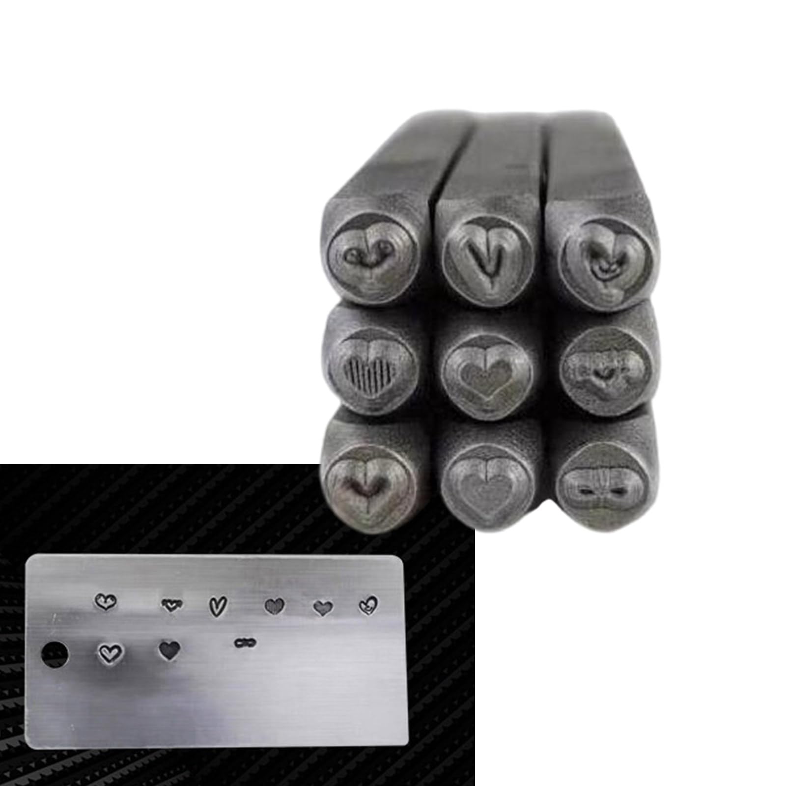 ENSEMBLE DE POINÇONS d'estampillage efficace et rapide beaux motifs Contenu du paquet : 9 poinçons. Poinçons Métal Motifs Cœurs Blouson De Ski Avec Motifs De Cœurs Pour Fille • Mon Blouson Lot 9 Poinçons Acier Gravure Améliorez vos projets d'artisanat avec ces tampons polyvalents, conçus pour vous aider à obtenir des résultats professionnels Caractéristiques : Composant : acier., Taille : environ 6,8 cm., Poids : 186 g., Quantité : 9 pièces. Utilisation polyvalente] – Facile à tamponner sur divers matériaux, y compris l'aluminium, le cuivre, le bois et le cuir, vous permettant de créer des objets... Lot De 9 Outils D'estampage Polyvalents Pour Cuir Et Bois - Motif Cœur - Pour La Fabrication De Bijoux · Remboursement pendant 3 ans de votre achat sous forme d... Convient pour les créateurs de bijoux professionnels, les amateurs d'artisanat et les débutants qui cherchent à personnaliser leur création Assurez-vous que cela ne vous dérange pas avant de commander., 2., La couleur de l'article peut varier de celle de la photo, en fonction des paramètres d'affichage et de luminosité de votre ordinateur. Découvrez la précision et la durabilité avec ce lot de tampons métalliques, parfait pour créer des motifs complexes sur le métal, le plastique, le bois et le cuir Convient pour les créateurs de bijoux professionnels, les amateurs d'artisanat et les débutants qui cherchent à personnaliser leur création. Améliorez vos projets d'artisanat avec ces tampons polyvalents, conçus pour vous aider à obtenir des résultats professionnels Fabriqué en acier, ce lot offre une gamme de tailles de symboles, assurant une utilisation durable et des résultats d'estampage précis.