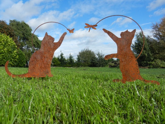 Décoration Jardin Chat Métal Décoration De Jardin Chat Avec Papillon, Figurine En Métal Aspect Figurine Jardin Résistante Intempéries Figurine Chat Papillon Bornhöft Chat Avec Papillon Déco Jardin Chat Rouillé, Décoration Jardin Chat Rouille, Décoration Jardin Vintage... La silhouette détaillée montre un chat élégant en position verticale, tandis qu'un papillon ludique est assis sur sa queue incurvée, une adorable combinaison qui ajoute une touche de poésie à votre jardin. La figurine est stable sur 2 connecteurs stables et est parfaite comme accroche-regard pour les parterres, les terrasses ou comme élément décoratif dans le jardin avant. La patine naturelle de rouille développe au fil du temps un caractère individuel et s'intègre harmonieusement dans le paysage du jardin. La figurine en métal se distingue par son aspect rouille rustique, qui lui confère un caractère authentique et intemporel. Un merveilleux choix pour les amateurs de chats et les amateurs de jardin qui veulent ajouter une touche artistique à leur espace extérieur. Résistant aux intempéries : construction robuste pour une utilisation en extérieur toute l'année, conçue pour toutes les conditions météorologiques Dimensions : piquet stable comme base pour un maintien sûr dans le jardin ou sur la terrasse Longueur totale 32 cm/hauteur 30 cm Hauteur : 50 cm. La silhouette de ce chat et son papillon, en coloris rouille, attire le regard; c'est un ornement de jardin charmant. La figurine Chat est en métal rouillé. La rouille, en plus de son aspect esthétique, forme une patine protectrice qui assure la durabilité de la figurine face aux intempéries. Avantages de la statue décorative Chat bisou papillon Résistance aux...