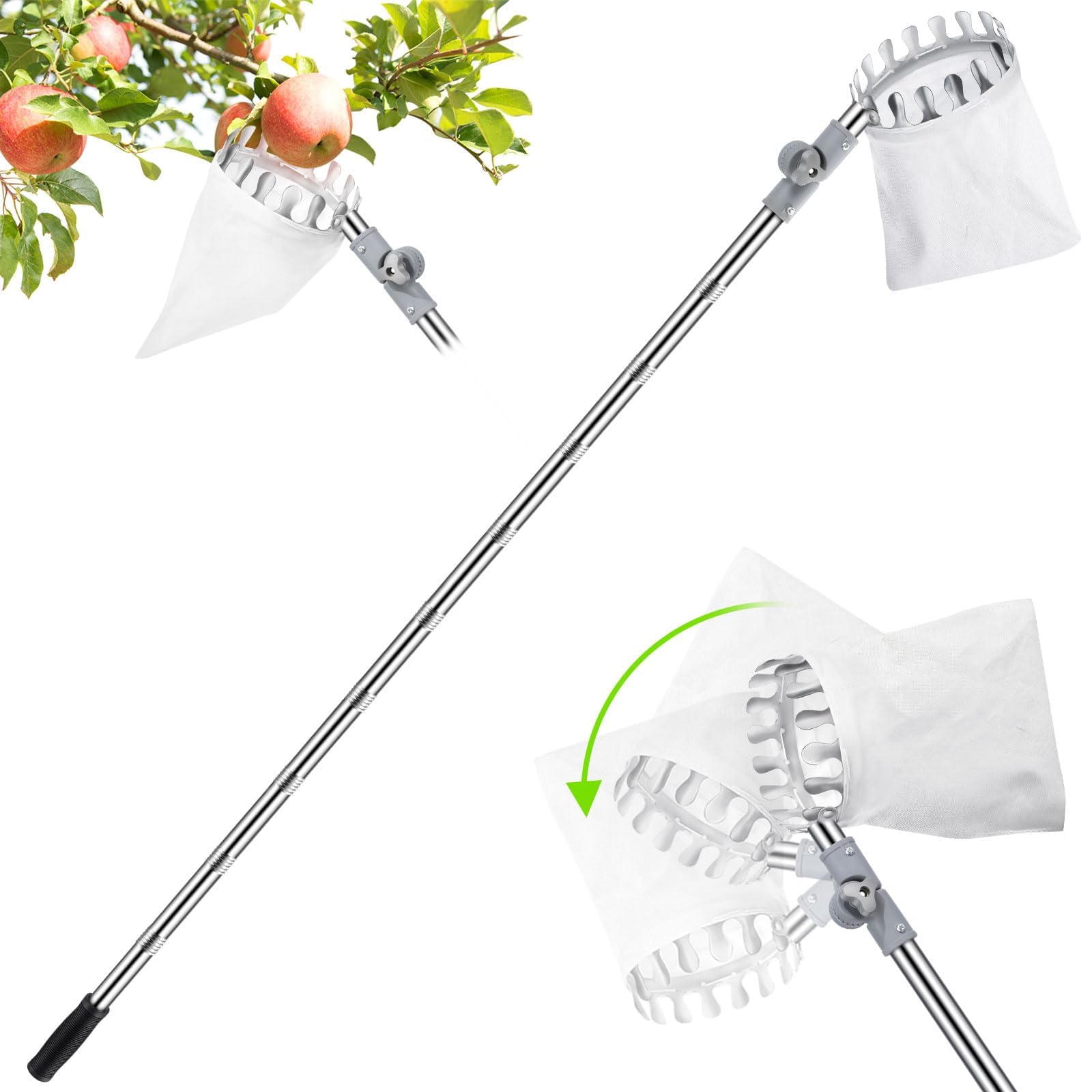 Pince à fruits de mer en acier inoxydable poignée compacte et Pince Cueillette Fruits Arbres Pince à Fruits Télescopique Avec Perche Réglable De 3 M Pince Cueillette Haute Avec Coupe Perche télescopique pour ramassage de fruits, outil de jardin avec 3 griffes réglables Portée télescopique : le manche extensible permet un accès facile aux branches hautes réduisant le besoin d'échelles et minimisant la tension pour les utilisateurs âgés et les jardiniers Poignée antidérapante sécurisée : doté de trois griffes flexibles, cet outil offre une protection contre la peau des fruits et une prise en main... Utilisation polyvalente dans différents environnements : parfait pour les vergers, les jardins domestiques, les fermes et les jardiniers âgés, améliorant l'efficacité et la sécurité lors des tâches de cueillette des fruits Coupe-branches intégré : la fonction de coupe intégrée vous permet de couper en toute sécurité les petites branches pour libérer les fruits coincés, combinant la récolte et l'élagage dans un outil pratique
