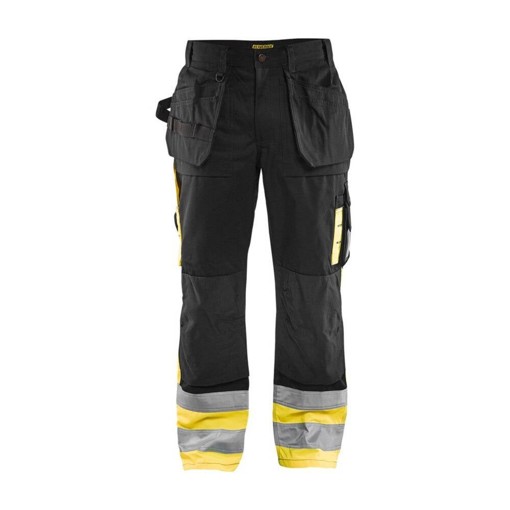 Vêtement Travail Sécurisé Pantalon Haute-visibilité Avec Poches Flottantes Et Genoux Préformés - Blåkläder Pantalon Travail Robuste Poches Genouillères Pantalon HV stretch Artisan Marine et jaune fluo - Blaklader Pantalon haute-visibilité léger et robuste ;avec performances hydrofuges. ;Grande résistance à la déchirure, performance élevée à l'abrasion et poches... Certifié selon normes EN 471 et EN 20471 vêtement Haute-Visibilité et EN 14404 quand porté avec des genouillères normées EN14404 (réf 4000, 4008, 4111 ou 4018). Les vêtements dans ce catalogue adorent les ateliers sales, les chantiers boueux, les projections de soudures et les étincelles de meulage. Les jours frais d'hiver, la bruine et le vent saisissant, sont également les bienvenus. Pantalon haute-visibilité léger et robuste avec une coupe moderne et de grandes poches fonctionnelles. Nous ne craignons rien parce que nos vêtements sont confectionnés pour vous protéger lorsque vous travaillez dans des conditions difficiles. Poches genouillères internes Passants une avec anneau en D Bandes réfléchissantes 50 mm. Certifié selon normes EN 471 et EN 20471 Cl 1 Vêtement de Haute Visibilité et EN 14404 quand porté avec des genouillères normées EN 14404 (réf 4000, 4008, 4111 ou 4018