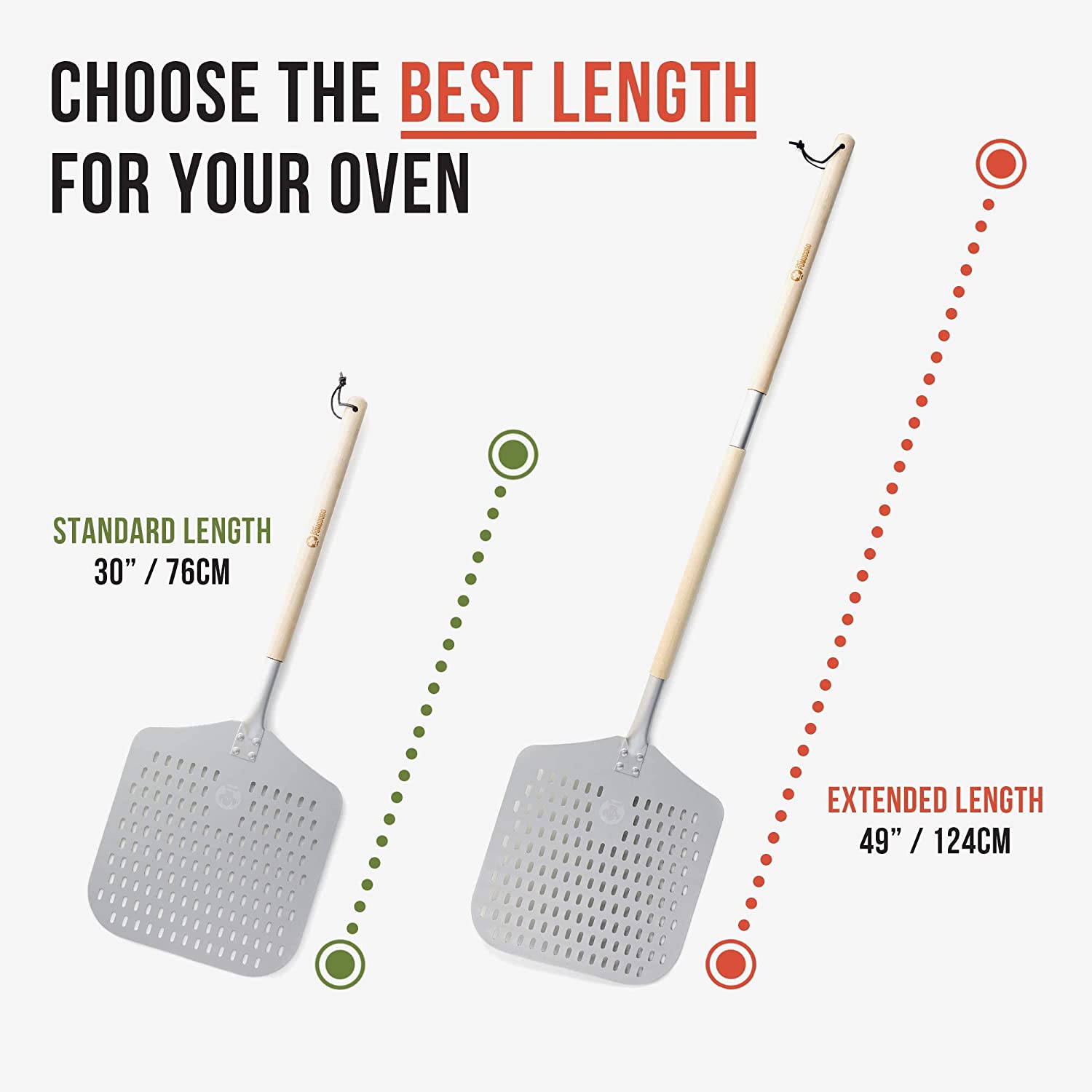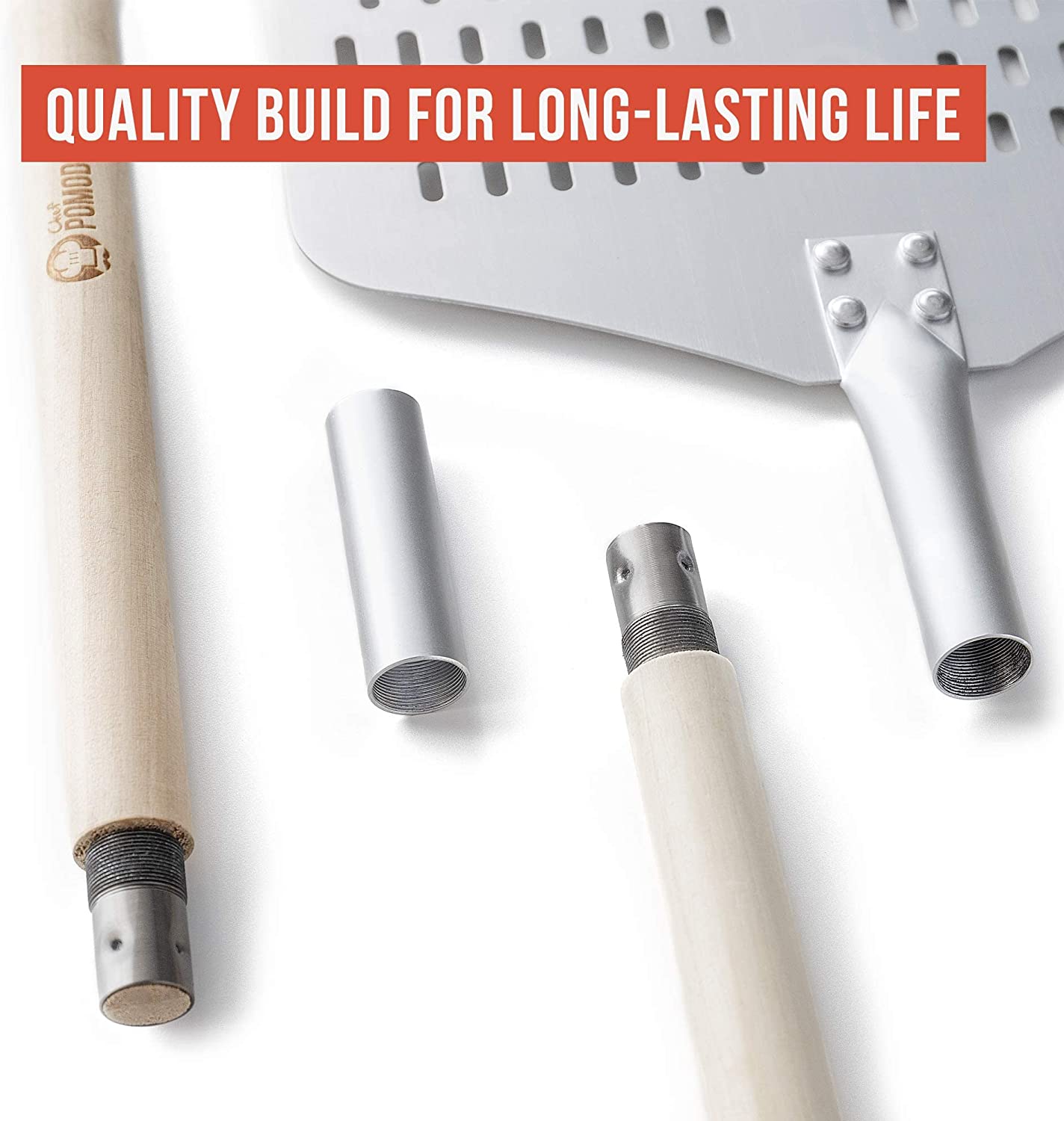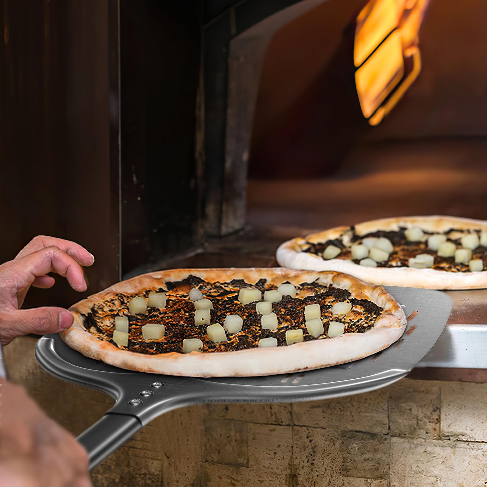 Pelle à pizza Ronde Inox 22cm Pelle à pain Manche 1.50m Qualité Un outil indispensable pour les amateurs de pizza qui font leurs propres créations délicieuses à la maison. Accessoire Four Pizza Maison Pelle à Pizza Perforée Avec Poignée Détachable Et ... – Grandado Accessoire Pizza Maison Outil de tournage de pizza pratique pour les cuisines à domicile : cette pelle à pizza à long manche de 22,9 cm dispose de palettes rondes en métal avec des perforations stratégiquement placées pour réduire l'adhérence. Utilisation multifonctionnelle : convient non seulement pour la cuisson et le transfert de pizza, mais peut également être utilisé pour d'autres pâtisseries telles que le pain, les pâtisseries, etc. C'est un outil indispensable dans la cuisine pour répondre à une variété de besoins de cuisine HK11913-pelle à Pizza perforée de 12 à 13 pouces. en aluminium... Cette pelle à pizza de 22,9 cm peut être utilisée dans les fours à pizza intérieurs et extérieurs, adaptée pour un usage domestique et professionnel. Poignée en aluminium revêtu de caoutchouc : la pelle à pizza dispose d'une poignée ergonomique en aluminium, équipée d'un caoutchouc antidérapant pour une prise en main sûre et confortable. Que vous fassiez de la pâtisserie à la maison ou dans un environnement commercial, cet outil est conçu pour répondre aux exigences de tout amateur de pizza. Spatule à pizza amovible en aluminium : fabriquée à partir d'aluminium anodisé durable, cette pelle à pizza perforée dispose d'une poignée amovible de 80 cm pour un rangement et une utilisation faciles. La poignée dispose d'un crochet pratique pour une suspension facile, ce qui rend le rangement simple et peu encombrant. Description du produit 9 Pouces Ronde Pelle Pizza à 80cm long manche