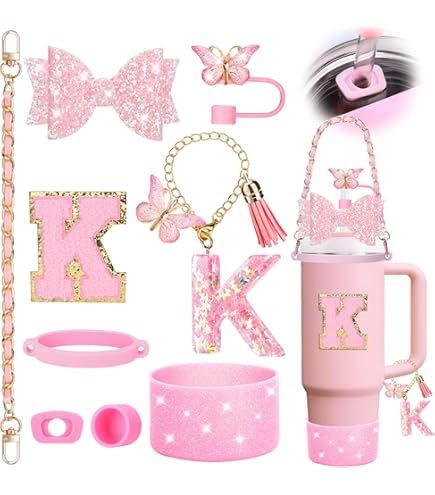 Bouchons Anti-déversement Stanley Lot De 8 Accessoires De Tasse Pour Gobelet Stanley De 887 Ml, 1200 Ml Avec Poignée, Y Compris Un Bouchon En Paille En Silicone, Un Bouchon Et Un Coffre, Un Bouchon Anti-déversement Kit Accessoires Tasse Stanley Rose Winmany Lot de 7 accessoires pour tasse Stanley comprenant Décorations Stanley : pour accessoires de tasse Stanley de 880 ml, 1200 ml. Comprend 1 bouchon de paille en forme de nœud, 1 botte d'arc, 1 chaîne à breloques spécialement personnalisée pour la poignée Stanley Tumber, 1 sangle de poignée perle, 1 bouchon rond anti-déversement, 1 bouchon carré anti-déversement, 1 botte de tasse, 1... Matériaux de haute qualité : ces accessoires roses Stanley sont fabriqués en silicone de qualité alimentaire de haute qualité pour garantir la sécurité, la non-toxicité, la durabilité et la réutilisation. Tous les composants sont faciles à nettoyer et les motifs sont clairs. Pratique et élégant : cet accessoire pour gobelet est non seulement polyvalent, mais aussi mignon et élégant. Combinaison tendance : cet accessoire rose Stanley comprend 1 sangle de poignée de bouteille d'eau, 1 anneau de tasse élastique, 1 couvercle de paille, 1 porte-clés boule en peluche, 1 housse de bouteille d'eau, 1 breloque de poignée et 3 bouchons anti-déversement. La charmante boule en peluche est assortie à des accessoires sur le thème floral pour créer un style sophistiqué. Ces accessoires Stanley ajoutent une décoration personnalisée à votre tasse Stanley tout en améliorant l'expérience d'utilisation. Il est parfait comme cadeau de Saint-Valentin, de fête des mères, d'anniversaire, de Noël, de Thanksgiving, de Nouvel An, etc. Design personnalisé : notre ensemble d'accessoires pour tasse Stanley est non seulement pratique, mais améliore également la personnalisation de votre tasse Stanley avec des breloques Stanley supplémentaires. Rendez votre tasse unique, Combinaison tendance : notre poignée de bouteille d'eau est équipée d'un anneau de sécurité en silicone avancé et d'une poignée en cuir métallique...
