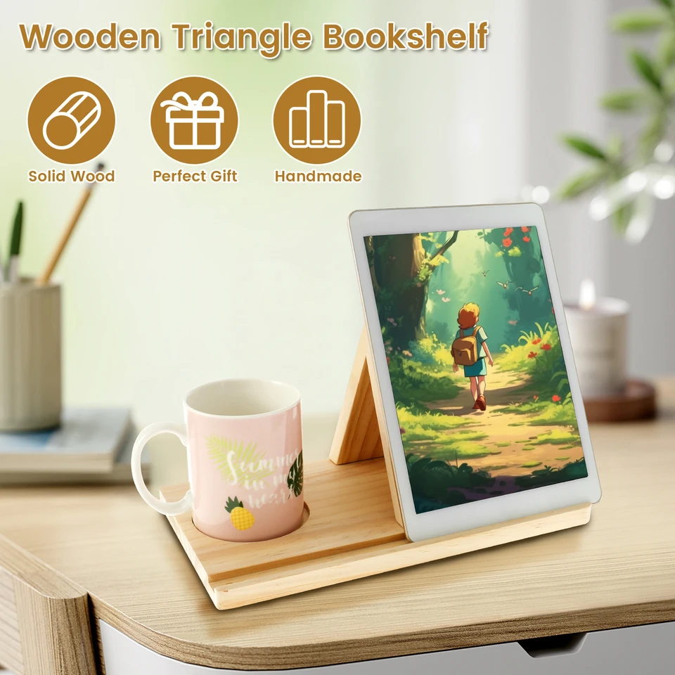 Petite Bibliothèque Table Nuit Accessoire Bureau Lecture Repose-livre Triangulaire En Bois Avec Porte-gobelet Yitexin - Support De Lecture, Rangement Bureau Porte-gobelet Bureau Repose-livre Bureau Décoration Il suffit de l'allumer et de l'éteindre pour passer rapidement en mode lecture à tout moment et profiter d'une expérience de lecture transparente. [matériel de haute qualité]: les étagères sont faites de bois de haute qualité, robustes et durables, avec des bords lisses et sans rayures Étagère à Livres De Lecture Avec Porte-gobelet Support De Livre Triangulaire En Bois Petite Etagere A Livres De Lecture Triangulaire Courte En Bois De Haute Qualite 88885886 L'étagère est dotée de supports latéraux qui sont à la fois confortables et protègent vos précieux livres Support Livre Triangulaire De Haute Qualité, Support Livre Bois Avec Porte-Gobelet, Porte Livre... Étagère Et Séparateurs: Cette étagère triangulaire idéale vous permet de ne plus vous soucier des plis sur le dos des livres, des marque-pages en papier ou des coins cornés, sans rencontrer de problèmes ni perdre d'espace Conception Triangulaire: Ce support en bois peut également servir de marque-page. Étagère Multifonctionnelle: Vous pouvez y poser des livres, tout en buvant une tasse de café pendant votre lecture. Il est suffisamment lourd pour ne pas bouger lorsque vous y placez des livres d'une certaine épaisseur