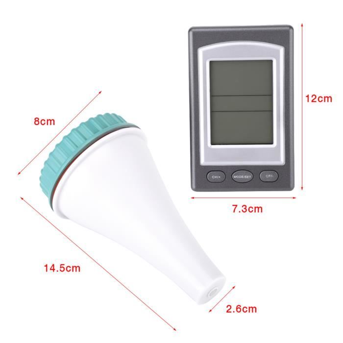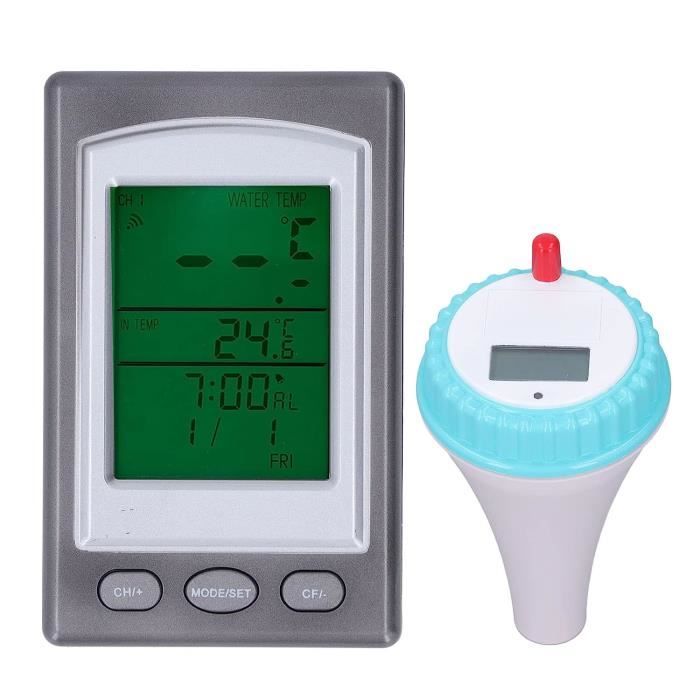 【Multi-Zone Pool Thermometer Floating Easy Read】 : Doté d'un écran d'affichage, ce thermomètre de piscine peut détecter la température de l'eau dans les piscines, les baignoires, les aquariums, les saunas et les bassins d'élevage, entre autres. Récepteur Intérieur Température Eau Mumisuto ThermomèTre Pour Piscine, ThermomèTre Piscine Flottant Sans Fil Radio Avec RéCepteur, éTanchéIté Ipx8 Et Est éConome En éNergie Pour Piscines, Bain De Glace, Jacuzzis Sonde Température Eau Piscine Les composants internes améliorés offrent un suivi de la température ultra-réactif et fiable, quelles que soient les conditions. La sonde flottante est étanche IPX8, et le récepteur affiche la tempé de l'eau et de l'air. Portée jusqu'à 60m, tu peux checker depuis ta terrasse. Pratique... Testé en laboratoire, il résiste à une immersion continue de 90 jours tout en conservant sa flottabilité et sa lisibilité. Il fournit des relevés précis et en temps réel de la température de l'eau, garantissant une baignade sûre et confortable. Ce thermomètre sans flotte simplement à la surface de votre piscine, spa ou étang et transmet la température sur son écran. Étanchéité IP67, précision de 0,1°C... 【Quadruple protection étanche】 : Ce thermomètre de piscine flottant étanche IP68 est doté de joints épais, d'un boîtier anticorrosion, d'un dessiccateur et d'un circuit à triple étanchéité. Spécifications du produit : Fonction : Étanchéité IP68 Émetteur à distance RF 433, distance effective de 50 m, distance sans mur ni obstacle de 80 à 120 m. 【Affichage de la température intérieure】 : Vérifiez la température dans le confort de votre maison. FYDUN Thermomètre Piscine Flottant sans Fil Solaire LCD - Accessoire Température intérieure : 0°C ~ 50°C / 32°F ~ 122°F Température extérieure : -40°C ~ 70°C / -49°F ~ 158°F Indicateur de confort de la température de l'eau Mode 12/24 Indicateur de batterie faible Piles de l'émetteur : 2 x LR6 AA 1,5V Piles de l'horloge : 2 x LR03 AAA 1., 5V Dimensions de l'horloge : 72 x 25 x 99 mm (L x P x H) Dimensions de l'émetteur : 87 x 92 x 185,5 mm (L x P x H) Liste d'emballage : 1*Thermomètre de piscine 1*Capteur de température de l'eau 1*Ligne du capteur 1*Mode d'emploi multilingue 【Save Energy】 : Équipé d'une puce à faible consommation d'énergie, ce thermomètre est économe en énergie et rentable, ce qui le rend extrêmement respectueux de l'environnement.