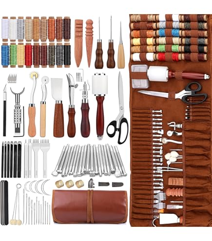 Kit de démarreur de rondelle d'œillets en lait... – Grandado KT TRAVAL DU CUR COUTURE MAN - | Traval du cur... Cadeau Bricolage Cuir Kit D'outils De Travail Du Cuir , 61 Pièces, Avec Sac De Rangement En Toile, Pour Gravure, Poinçonnage, Couture, Estampage, Ponçage, Idéal Pour Les Débutants, Les Bricoleurs Et Les Professionnels Gravure Couture Cuir DIY Description du produit Ce kit de maroquinerie de 38 pièces comprend tout le nécessaire pour perforer, découper, coudre et sculpter. Kit de 38 pièces pour débutants : ce kit de maroquinerie comprend tous les outils essentiels pour la maroquinerie, vous permettant de couper, façonner, tamponner, coudre et profiter pleinement de l'expérience du travail du cuir Shipenophy Kit d’outils en cuir Ensemble d'outils de couture pour l... Avertissement De Sûreté non applicable Les poignées en bois sont non seulement confortables à tenir, mais réduisent également la fatigue lors d'une utilisation prolongée, rendant votre travail plus facile Que ce soit pour un anniversaire, les fêtes ou une occasion spéciale, cette trousse magnifiquement conçue est le cadeau idéal pour vos amis ou vos proches Rangement soigné : Notre kit de couture en cuir est livré avec un sac de rangement permettant de ranger vos outils de manière organisée et catégorisée, facilitant ainsi l'accès à ceux dont vous avez besoin.