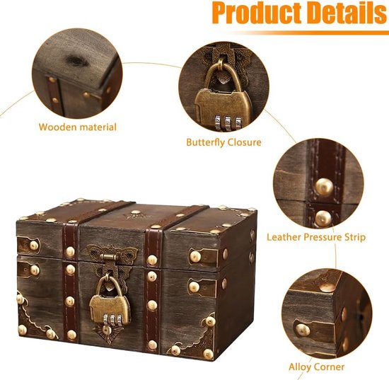 Teacher Created Resources Coffre au trésor en plastique Coffre Au Trésor Bois Brynnberg Coffre Au Trésor Grand Avec Serrure 40x23x27cm Coffre En Bois Coffre A Boîte Décorative Serrure A : Moo Hasp B : Petite serrure centenaire C : Bloc à bonheur D : code rétro à trois chiffres Contenu du colis : 1 boîte à trésor en bois avec serrure. Remarque : En raison des différents paramètres d'éclairage et d'écran, la couleur de l'article peut être légèrement différente de l'image Rangement multifonction : pour une utilisation comme tirelire ou boîte décorative, elle peut contenir tout, des bijoux aux bijoux, ce qui la rend pour une utilisation à la maison ou au bureau. Coffre au trésor vintage unique en bois avec serrure, boîte décorative pour ranger l'argent en toute sécurité (B) · A. €8.10€8.10. €8.10€8.10. In stock · B €8.41... Occasion spéciale : un choix attentionné pour les célébrations ou les vacances, ce coffre au trésor plaira aux enfants et aux adultes qui aiment les articles nostalgiques. Fabrication artisanale unique : chaque coffre est fabriqué à la main à partir de bois, présentant des motifs naturels distincts qui améliorent son look classique.