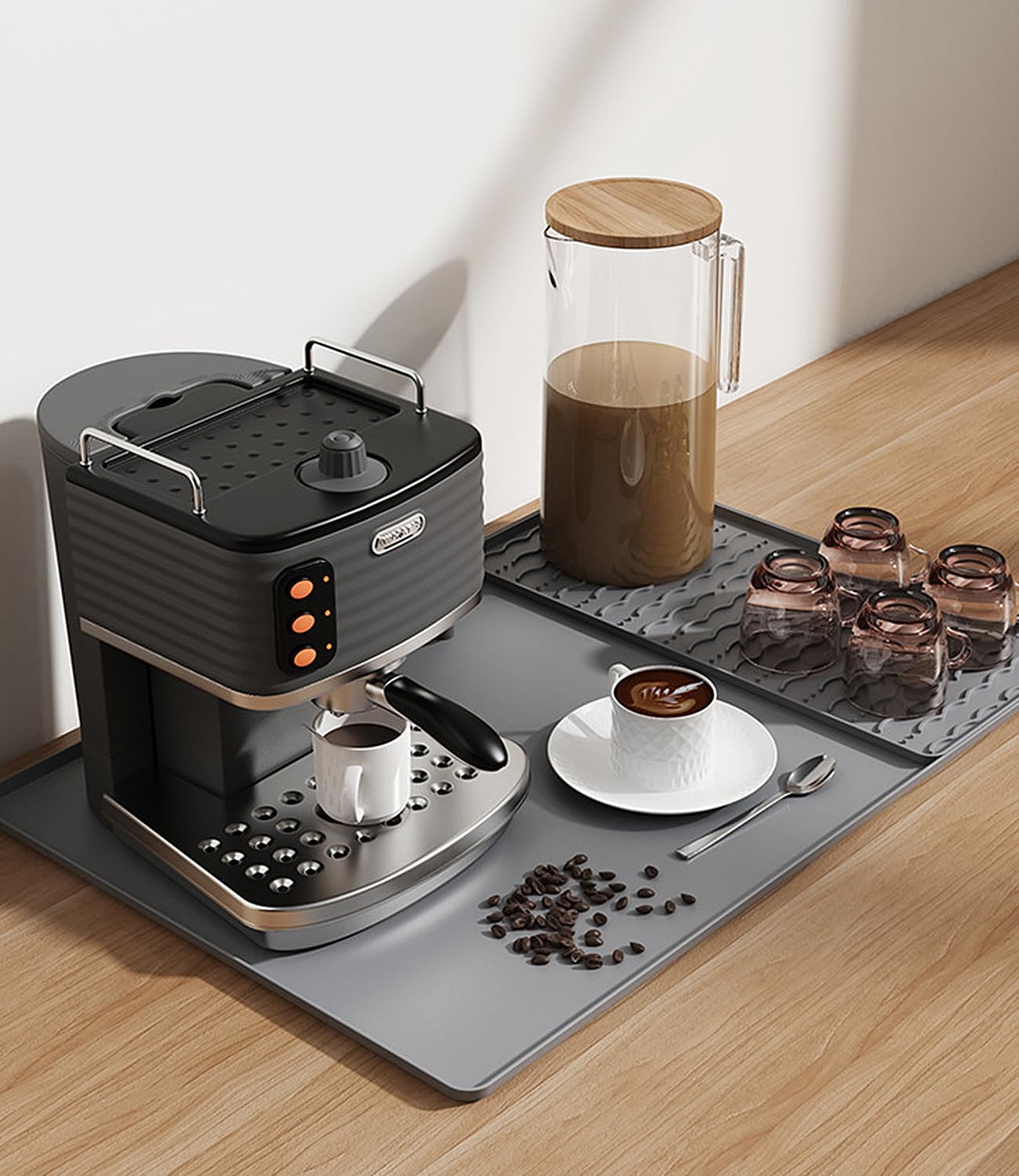 Tapis Cafetiere Xespis Tapis Pour Machine à Café, 60 X 40 Cm, Avec Silicone Tapis Egouttoir, Tapis En Silicone Avec Rebord, Tapis Machine à Café, Antidérapant Et étanche, Tapis Pour Machine à Café, Robot Tapis Silicone Machine à Café Tapis pour Machine à Café, Tapis de Machine à Café en Silicone, Tapis... xyuayamz Tapis d'égouttement pour machine à café - 40 x 60 cm - Tapis de séchage de Avec ses dimensions de 61 x 41 cm, le Tapis Egouttoir Vaisselle offre un espace généreux pour presque tous les modèles de machines à café, machines automatiques, moulins à café et cafetières filtre. Tapis de machine à café antidérapant en silicone 40 x 60 cm pour comptoirs de cuisine, tapis de séchage de vaisselle et tapis d'évacuation de bar facile à... De plus, le Tapis Egouttoir Vaisselle peut également servir d'égouttoir, pour une cuisine encore plus efficace et flexible. Tapis Machine à café Avec sa conception amovible, le grand tapis de 60x40 cm est parfait pour placer une machine à café et d'autres appareils essentiels ; l'autre petit tapis de 19x39 cm peut être utilisé pour placer des tasses à café et peut être facilement retiré et utilisé séparément. Tapis Machine à Café Facile à nettoyer, il suffit d'utiliser de l'eau courante et un morceau de savon pour essuyer, les sous-verres seront neufs et pourront être mis au lave-vaisselle, Tapis Machine à Café Doux et légèrement élastique, peut être facilement enroulé pour le rangement, vous faisant gagner de la place. Vous recevrez deux Tapis Cafetiere en SiliconeTapis Cafetiere en Silicone Taille : Grand : 60 x 40 cm / 24 x 16 po, Petit : 39 x 19 cm / 15 x 7,4 poTapis Cafetiere en Silicone Matériau : Silicone de haute qualité, doux, confortable et durableTapis Cafetiere en Silicone Couleur : NoirTapis Cafetiere en Silicone Doté d'un nouveau design en deux parties, il améliore considérablement la fonctionnalité et l'espace de rangement.