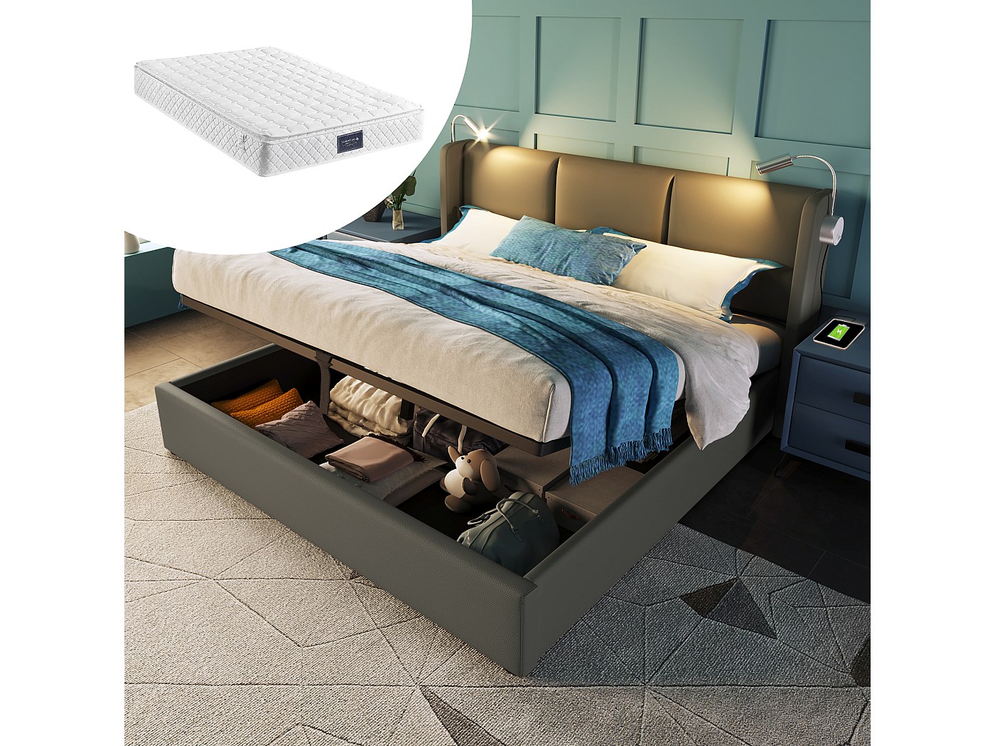 【DURABLE Vous】:avez l'assurance d'investir dans un meuble durable. 【LIT À RESSORT À GAZ】 : Grand espace de rangement. 【INFORMATIONS DÉTAILLÉES】 : Ce lit est disponible en plusieurs matériaux et tailles : lin beige naturel et flanelle grise, ainsi qu'en trois tailles : 90 x 200 cm, 140 x 200 cm et 160 x 200 cm. Plus besoin de vous lever pour recharger vos appareils, ce qui vous fait gagner du temps et de l'énergie. OOIILLEE Coffre de rangement - Comparer les prix et offres pour OOIILLEE Coffre de rangement Le sommier à lattes est composé de lattes en bois massif robustes, offrant un soutien confortable pendant le sommeil. 【FONCTION DE CHARGEMENT INTÉGRÉE】:Un port USB est situé sous la liseuse pour recharger vos appareils électroniques tels que téléphones portables et tablettes. OOIILLEE Lit 140x200 avec sommier, Lit Coffre BEAUCOUP D'ESPACE DE RANGEMENT: Il y a trois tiroirs sur un côté du lit et le coffre de lit offre beaucoup d'espace de rangement... Si les deux colis sont arrivés et qu'il manque des articles, veuillez contacter le service client. Son réglage flexible vous permet de diriger la lumière exactement là où vous en avez besoin pour une lecture paisible. Le sommier à lattes se plie facilement grâce au vérin de levage. Lit Avec Lampes Lecture USB Lit Coffre 140x200 Cm Avec Sommier à Lattes, Lampes De Lecture Et Ports Usb, Tissu En Lin, Beige Lit 90 X 190 Avec Sommier Équipé de ports de chargement USB et Type-C, il permet de garder vos appareils chargés. La lumière LED réglable crée un environnement idéal pour la lecture Pour réduire les risques de dommages, ce sommier est expédié dans deux colis, dont la livraison peut être effectuée à des dates différentes.