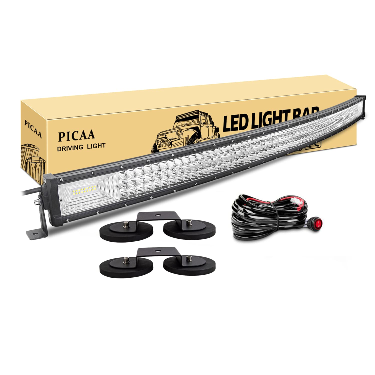 Projecteur LED Combo Flood Spot PICAA Led Light Barre Avec Support De Plaque D'immatriculation Avec De Cablage, 58 Cm 23 Pouces 570W 12V Quadruple Rangée Barre Lumineuse LED De Travail,pour Hors Route Véhicules Voiture Camions 4x4 Barre LED 58cm 570W Support Plaque Support de plaque d'immatriculation pour remorque avec feux 58 cm 9D 23 pouces 570W 12V Quadruple Rangée Barre Lumineuse LED de Travail,pour hors route Véhicules Voiture camions 4x4, 6000k. De PICAA. 4,2 sur 5 étoiles... Emballage inclus: 1X Barre lumineuse LED 1XSupport de Plaque D'immatriculation 1X 12V kit de faisceau de câbles. ★【Barres lumineuses LED PICAA】 - LED triple rangée super lumineuses à haute intensité et lentille PC durcie incassable., plus d'économies ★ 【Construction solide et robuste】 - Fabriqué en aluminium moulé sous pression en aluminium massif de haute qualité pour une durabilité en doublant le dissipateur de chaleur. Véhicules d'ingénierie : excavatrice, bulldozer, rouleau compresseur, bulldozer, grue et camion minier, etc. Support de montage verrouillable en acier inoxydable robuste robuste angulaire facile à assembler. Offrez la commodité d'ajuster la position de manière flexible en cas de besoin. ★【Tension de fonctionnement de la lumière LED】 - DC 10-30V (convient aux véhicules 12V/24V), si avec kit de câblage uniquement pour 12V PICAA 130c 52 Pouces 675W Barre LED 4x4 Support de ontage...