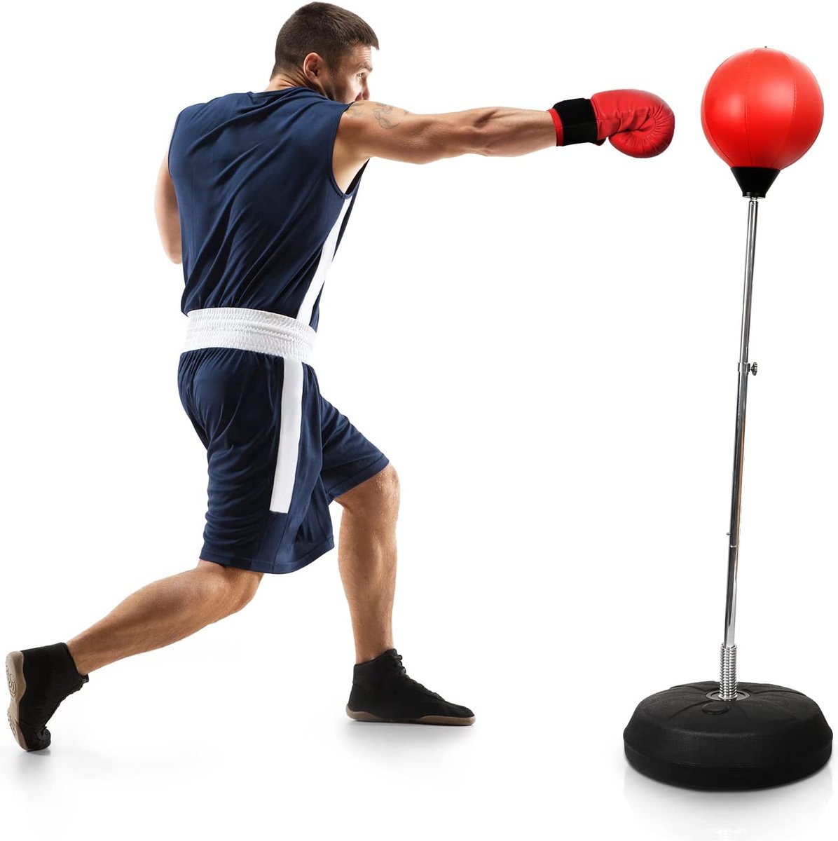 Kit de boxe pour enfants - ATYHAO - AIM 60299 - Sac de frappe réglable Contenu du colis : 1 sac de rangement Reflex 1 paire de gants., 1 sangle. Coordination Main Précision Sac Réflexe Avec Support Speed Bag De Boxe Avec Barre De Rotation - Entraînement Réflexe Et Fitness à La Maison Kit Boxe Fitness Réglable Support Sac De Frappe Caractéristiques : Matériau : EVA, acier inoxydable. POTENCE SUR PIED POUR CONVOYEUR SAC DE FRAPPE - FIGHT Pour les amateurs de sport de combat et d'arts martiaux, le sac de frappe avec support est l'équipement incontournable pour s'entraîner et améliorer ses techniques de frappe. Que vous pratiquiez la boxe, le kickboxing, le muay-thaï ou tout autre sport de combat, le sac de frappe vous permet de travailler votre puissance, votre précision et votre endurance. Chez , vous trouverez... Hauteur d'entraînement réglable : le support du sac de frappe prend en charge le réglage de la hauteur de 50 à 59 pouces, assurant une position de frappe confortable pour répondre efficacement à divers besoins d'entraînement Installation sans interruption : conçue avec une boule en mousse EVA et un axe à ressort réglable pour une tolérance dynamique instantanée, commencez à l'entraînement avec facilité grâce aux accessoires d'entraînement complets, y compris l'installation rapide assure un assemblage pratique Utilisation polyvalente : conçue pour fournir un support constant, la base verticale permet un entraînement de fitness et de boxe sans problème, s'adaptant sans effort à divers environnements et besoins Avec de fortes caractéristiques d'amélioration du rebond et de la précision, il double comme équipement anti-stress. Caractéristique de réinitialisation rapide : équipé d'un ressort à haute ténacité, il garantit une réinitialisation rapide et un fort rebond, simulant des effets d'entraînement réels pour améliorer la vitesse de réaction pendant les séances d'entraînement Convient pour les environnements de gymnastique à la maison et à l'intérieur, ce sac de frappe avec support met l'accent sur l'entraînement à la coordination manuelle et convient aussi bien aux adolescents qu'aux adultes.