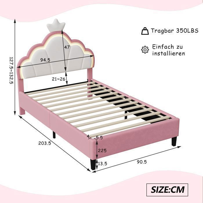 Tête de lit réglable en hauteur : ce lit double s'adapte de manière flexible aux matelas de différentes épaisseurs (10 à 15 cm) et est idéal pour les matelas à ressorts, à mémoire de forme et en mousse. Lit simple 90 x 200 cm avec 2 tiroirs pour enfants, étagères de... Velours respirant : facile d'entretien et durable, idéal pour un usage quotidien. Tête de lit réglable en hauteur pour s'adapter aux matelas de 10 à 15 cm. Lit 90x190 Lit Enfant Capitonné 90 X 200 Cm, Cadre De Lit Avec Tête De Lit Fleurie Et Sommier à Lattes, Velours, Rose | Leroy Merlin Lit 90x200 Enfant La tête de lit douce a une texture délicate qui offre non seulement du confort, mais soutient également le dos, douce pour la peau et confortable, ce qui en fait le meilleur compagnon pour le sommeil des enfants. Description du produit : Ce lit de princesse crée une atmosphère de rêve. La tête de lit rembourrée est aussi confortable qu'un nuage. Le tissu respirant assure un climat de sommeil agréable. Chaud en hiver et frais en été, idéal pour les lits d'enfant. Le tissu respirant et lisse assure un climat de sommeil agréable. Matelas recommandé : 90 x 200 cm (sans matelas)., Nombre de lamelles : 10., Assemblage nécessaire : oui. Ajoutez une touche de charme européen à la chambre de votre enfant avec ce lit, adapté aux matelas de 90x200 cm, au design raffiné. Sa tête et son pied de lit en forme de croix offrent une finition soignée, idéale pour une chambre stylée et sereine Velours de haute qualité : la tête de lit en velours a une texture délicate et protège la peau délicate des enfants. Montage facile : chaque partie de ce lit pour adolescent est clairement étiquetée et numérotée pour permettre un montage rapide et facile. Lit simple 90 x 200 cm avec étagères et tiroirs - MDF + panneau