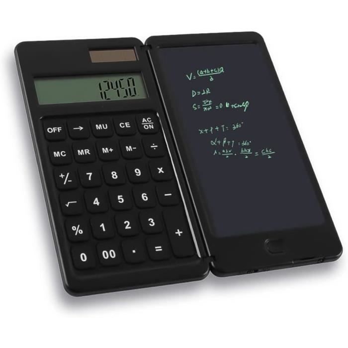 Dimensions : 160 x 78 x 12 mm. Bouton en silicone : toucher doux, bouton muet, le bureau de classe ne dérange pas, c'est une bonne aide pour l'apprentissage au bureau. Poids du produit : 120 g. Alimentation : batterie + énergie solaire, uniquement noir. Écran LCD sans poussière, encre, sûr et hygiénique. Version manuscrite de 15,2 cm avec écriture lisse. Calculatrice Portable 10 Chiffres Sikai Calculatrice Avec Tablette D'écriture LCD, Calculatrice Debout 2 Calculatrice Avec Tablette Effaçable Calculatrice Uxcell - Calculatrice 12 Chiffres Grand LCD Affichage Électronique Solaire Batterie Nettoyage en un clic : une pression pour effacer immédiatement. Taille de la tablette : 145 x 68 mm. [Tablette calculatrice] : cette calculatrice de fonction est livrée avec une tablette qui vous permet de faire des brouillons tout en calculant. L'écran LCD est incliné pour une lecture facile, et elle fonctionne à l'énergie solaire batterie de secours - donc jamais à court de jus. Parfaite pour les... Rangement pliable : design ouvert et fermé, petit et portable, transportez-le n'importe où. Double alimentation : énergie solaire + pile bouton double alimentation, noir uniquement Double alimentation : solaire + pile bouton double alimentation, longue durée de vie de la batterie, utilisation garantie., Noir uniquement. CALCULATRICE, AFFICHAGE À 12 Chiffres avec Table D'éCriture EffaçAble... [Design intime] : rangement intégré pour éviter la perte du stylo. Livré avec un manuel (français non garanti). Conception réfléchie.