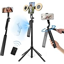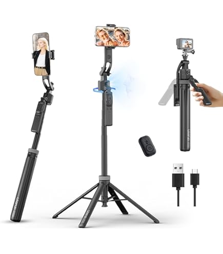 Trépied Aluminium Pliable 1.8m Barre À Selfie Avec Trépied, Lumière LED Et Télécommande Bluetooth Hoco Trépied Selfie Lumineux Selfie Stick Intelligent Trépied Suivi Automatique Visage 360 Selfie Stick Intelligent Avec T 679754 Perche à Selfie Trépied avec Télécommande Bluetooth Pour Android IOS... Idéal pour les créateurs de contenu TikTok, YouTube, Instagram ou Zoom, ce trépied assure un cadrage parfait même lorsque vous bougez. Fabriqué en alliage d’aluminium robuste et léger, il se plie facilement pour être transporté partout. La télécommande Bluetooth intégrée vous permet de déclencher vos prises à distance, sans toucher à votre smartphone. Améliorez vos vidéos, lives et photos avec ce trépied multifonction 1,8 m équipé d’un éclairage LED détachable et d’un support rotatif 360° avec suivi automatique du visage. Éclairage LED intégré & détachable – Obtenez une image claire et lumineuse même en faible luminosité, idéal pour TikTok, Instagram ou YouTube. Rotation 360° + suivi automatique du visage – Ne sortez plus du cadre : la caméra suit vos mouvements pour des vidéos dynamiques et toujours centrées. Compatible universel – Convient à tous les smartphones jusqu’à 6,7 pouces, s’adapte à vos besoins pour selfies, vlogs, streaming ou conférences Zoom. Selfie Stick Bluetooth - Téléphone portable - Trépied pour Smartphone...