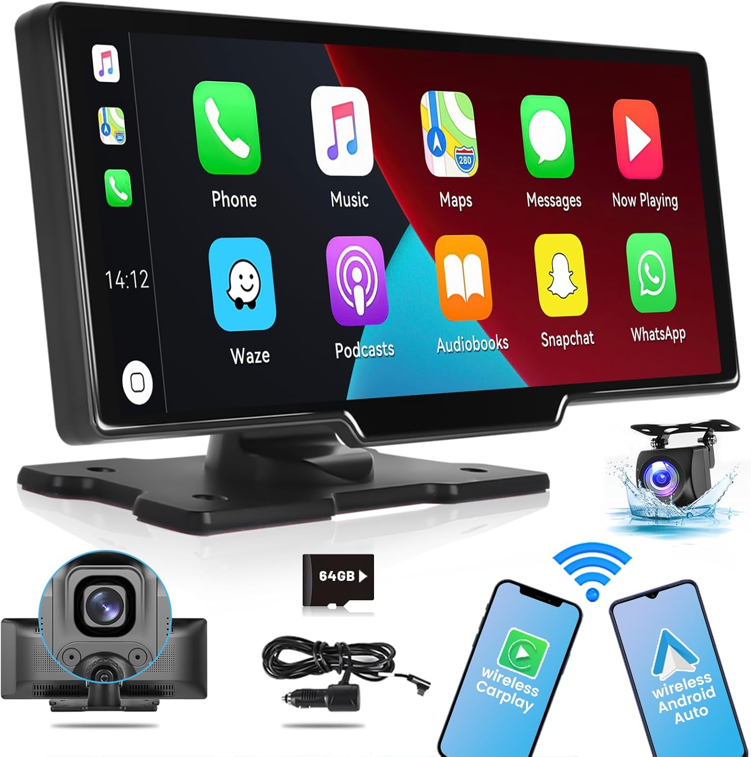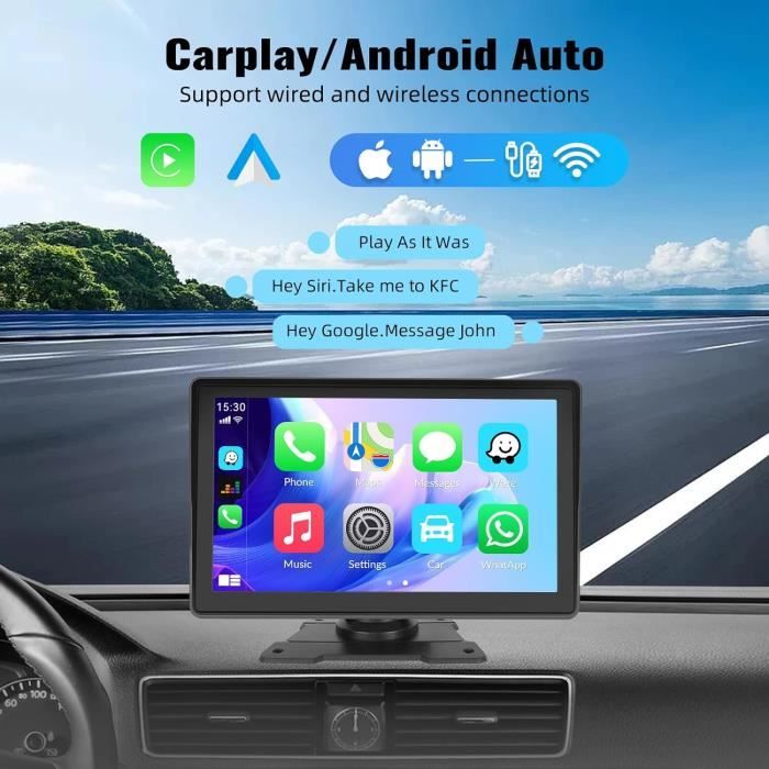 Que vous utilisiez le Bluetooth, une prise AUX ou un transmetteur FM, il est conçu pour s'harmoniser et est compatible avec Android Auto et CarPlay. La caméra de recul affiche des images arrière nettes sur son écran large de 9 pouces, un atout essentiel pour les personnes ayant une visibilité réduite derrière le véhicule. Il exploite les dernières données GPS des smartphones, éliminant ainsi le besoin de mises à jour fréquentes, contrairement aux navigateurs traditionnels. 🚘【Navigation GPS en temps réel 】l'écran tactile Apple CarPlay HD de 10,26 pouces offre une navigation GPS précise et en temps réel, sans délai. S'il y en a un sur la voiture, branchez-le sur l'interface auxiliaire d'origine de la voiture via le câble AUX. Connectez une radio FM pour faire de même sur le canal (veuillez éviter d'utiliser un canal occupé par une station FM). Autoradio Portable CarPlay Portable Autoradio Avec Android Auto, 6.86 Pouces Wireless Carplay Portable 7 IPS Touchscreen Car Stereo with Wireless CarPlay and 🚘【Caméra de recul avec assistance à la marche arrière améliorée】Maîtrisez la marche arrière en toute confiance grâce à notre autoradio avec caméra de recul. Cette interface intelligente améliore considérablement la sécurité et le confort de conduite, garantissant une expérience de conduite agréable et pratique. sont nettes et fluides. L'autoradio prend en charge l'émetteur FM, Bluetooth et le câble AUX pour se connecter à l'entrée audio auxiliaire de votre voiture afin de transmettre la voix à l'autoradio d'origine Grâce à l'intégration de Siri ou de Google Assistant, passez des appels, envoyez des messages et naviguez sans effort grâce à votre voix. Un cadeau idéal avec une garantie de 2 ans pour les occasions spéciales comme la fête des Mères, la fête des Pères ou Thanksgiving ! 🚘【Lien miroir sans fil et écran tactile HD 9''】 Écran stéréo Apple CarPlay sans fil pour Android et iOS avec écran tactile HD 9'', idéal pour la synchronisation du lecteur multimédia et de la navigation. Autoradio avec Apple CarPlay Android Auto sans Fil, 7 '' Écran Tactile 1080P Autoradio avec Lien... 【Améliorez votre expérience en voiture avec KMUTZY】les récepteurs audio stéréo CarPlay de KMUTZY prennent en charge les clés USB et les cartes SD (non fournies). Pour toute question, nous vous répondrons dans les 12 heures. 🚘【Commande vocale intelligente pour une conduite mains libres】 Gardez les mains sur le volant et concentrez-vous sur la route.