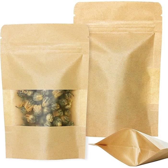 Les sacs en papier kraft avec fenêtre sont non toxiques et inodores et conviennent donc pour le stockage sûr des aliments tels que les bonbons, les fruits secs, les grains de café et les feuilles de thé. Comprend une fenêtre transparente et une base autoportante renforcée. Triple protection : Papier kraft extérieur + couche PET indéchirable + couche intérieure en CPP de qualité alimentaire. Sacs en papier kraft - La couche de cire étanche protège le sac de l'humidité, de l'huile et des odeurs. Revêtement en cire imperméable : résistant à l'humidité, à l'huile et aux odeurs. ASelected 800 Pcs Sachet Bonbon Transparent, 8x12CM et 10x15CM Sachet... Les sacs en papier marron sont parfaits pour les vacances et les occasions telles que Noël, Halloween, la fête des mères, Pâques, les anniversaires et les mariages. Matériau sûr et durable : sacs en papier KINETOX marron. Sacs polyvalents transparents – Sacs en papier kraft KINETOX Contenu : Lot de 50 sachets en papier marron avec fermeture à pression., Dimensions : 10 x 15 cm. Emballage Alimentaire étanche Qualité Alimentaire Sachet Kraft Alimentaire Avec Zip - Emballage Pour Noix, Grains De Sac Congelation 50Pcs Sachet Kraft Alimentaire Standable Sachet Zip Kraft Avec Fenêtre... Emballage cadeau : sacs en papier KINETOX avec fenêtre il convient également aux emballages de vente ou aux sacs à échantillons sur lesquels vous pouvez attacher l'étiquette de votre marque. Large gamme d'applications : les sacs en papier kraft KINETOX conviennent à une variété de scénarios domestiques. Design pratique : les sacs en papier kraft KINETOX disposent d'une gamme de designs bien pensés : la déchirure en forme de U sur le dessus permet une ouverture facile après le scellage à chaud, la fermeture éclair lisse peut être scellée à plusieurs reprises pour éviter l'humidité et la poussière, et la fermeture éclair lisse aide à refermer le sac facilement. Sachets pour papier d'amande brûlée, il peut même être utilisé comme petit sac cadeau pratique et attentionné pour les amis et la famille. Sachet Kraft Alimentaire, Sachet Zip Kraft Papier Réutilisables et Hermétiques, Doypack Kraft Les sacs à biscuits durables peuvent être utilisés pour stocker des produits secs tels que des bonbons, des noix, des grains de café, des épices, des biscuits, du thé, des céréales, des collations, des graines, des haricots et des herbes séchées. ✓ Encoche de déchirement en forme de U sur le dessus pour une ouverture facile après scellage à chaud. Sûr et durable, pour un respect sûr Nourriture de qualité alimentaire : convient pour le contact direct avec les grains de café, les noix et les collations pour bébé. Design convivial : Fermeture éclair lisse pour une ouverture et une fermeture répétées.