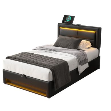 Un grand espace de rangement est accessible sous le matelas : il vous suffit de soulever ce dernier pour y ranger oreillers et couvertures. Ports USB Charge Lit Coffre 90x200 Cm - Lit Capitonné Avec éclairage LED - Tête De Lit Reglable Velours Beige Sans Matelas Canapé Lit Moderne Pour Studio Idéal pour un sommeil réparateur, ce lit est également facile à entretenir et garantit une grande durabilité. Vous dites ainsi adieu aux problèmes de prises insuffisantes, pour un confort accru répondant aux besoins des foyers modernes. Son piétement discret de 29 cm crée un effet suspendu élégant et intemporel. 【Structure solide et fonctionnalité optimisée】 Un cadre métallique renforcé et une structure robuste en lattes de bois garantissent une stabilité et une sécurité durables. Lit Enfant Rembourré 90x200 Cm, Avec éclairage LED, Lit Coffre Hydraulique Tete De Lit Reglable En Hauteur Tissu Velours Gris Caractéristiques techniques : Dimensions globales (L x l x H) :215 x 101 x 75 cm Dimensions du couchage (L x l) :207 x 96 cm Hauteur du cadre du sol :24 cm Hauteur des pieds :29 cm Matériau du cadre :Métal renforcé Système de soutien :Structure à lattes de bois Tête de lit :Rembourrage en mousse, revêtement velours crème, motif carré matelassé Fonctionnalités spéciales : Mécanisme hydraulique pour accès au rangement intégré Bandes LED RGB(7 couleurs) Ports de chargement : 1x USB-A, 1x USB-C Couleur :Crème Type de produit :Lit canapé 1 place multifonction avec rangement Contenu de la livraison : 1 x cadre de lit. Pratique et élégant, ce lit vous aide à optimiser l'espace de votre chambre tout en gardant votre intérieur bien organisé. 【Multifonction : lit, canapé et rangement】 Ce fauteuil lit 1 place se transforme facilement en lit grâce à son mécanisme hydraulique intégré. 【Design moderne et matériau agréable】 Tissu velours crème doux au toucher, offrant un confort optimal. Avec une hauteur de cadre de 24 cm du sol, ce lit allie fonctionnalité et praticité au quotidien. Lit enfant rembourré 90x200 cm, avec design couronne, éclairage LED... Lit coffre 90x200 cm Lit simple rembourré Tête de lit Espace de... La tête de lit généreusement rembourrée en velours crème et le pied de 29 cm créent une élégante sensation de flottaison. 1 x notice de montage 【Éclairage LED personnalisable】 Ce lit coffre intègre une bande LED avec éclairage personnalisable. Grâce à son mécanisme hydraulique intégré, il passe facilement du canapé confortable au lit spacieux, tout en offrant un grand rangement discret sous le matelas.