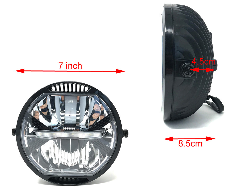Éclairage puissant : équipé d'une LED 12 V 45 W, notre phare offre une luminosité exceptionnelle, offrant une excellente visibilité pendant les trajets de jour et de nuit. La fonction 1 est le feu de croisement, la fonction 2 est le feu de route, la fonction 3 sert de feux de circulation diurnes blancs, et la fonction 4 peut être utilisée comme clignotants ambrés ou feux de position en option Installation facile : le phare est livré avec un connecteur H4, ce qui le rend simple et facile à installer sur votre moto. Commandez maintenant et profitez d'une expérience de conduite plus lumineuse et plus sûre H4 Headlight Bulbs Alchemy Parts Motorbike 6.75 Inch Matt Black H4/55W Headlight With Grill Front For Cafe Racer Choppers Jeep Renegade Accessories Fonctions polyvalentes : le phare offre plusieurs fonctions pour répondre à vos besoins. Grâce à son design peu profond, il se place près des fourches, offrant un look élégant et compact à votre moto. TUTO: Brancher un feu avec clgnotants ntégrés sur scoot et 50 cc... Veuillez noter : ce phare n'est pas homologué/marquage E pour une utilisation en Europe continentale, mais convient pour une utilisation au Royaume-Uni Sa couleur LED blanc froid 6000K émet une lumière claire et nette, assurant une excellente visibilité sur la route. Performance optimale : le faisceau haut offre 30 W de puissance et 3240 lumens, tandis que le faisceau bas fournit 15 W et 1620 lumens, assurant un éclairage équilibré pour différentes conditions de conduite. Feux Jour Clignotants Intégrés Casque Vélo Avec éclairages Et Clignotants Intégrés CoolRide Noir Mat Phare Moto Universel 12V Projecteurs B-LED 80W X-Turn Retroft Unversel avec feux de jour et... Mesures précises : pour des dimensions précises, veuillez vous référer à nos photos du produit.