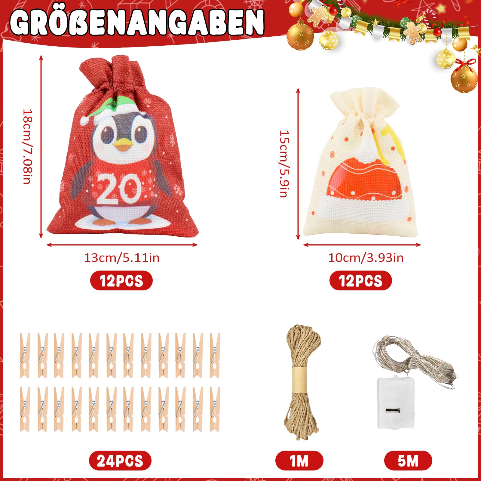 Calendrier de l'Avent, DIY Sachets en Tissu à Remplir, Numérique Calendrier de l'Avent à remplir - 24 sachets en tissu à remplir soi-même - 2 tailles - Décoration de Noël DIY 2025 - Pour enfants Calendrier De L Avent A Remplir Tissu 24 Calendriers De L'Avent Sachets Calendrier De L'Avent Calendrier De L Calendrier Avent 2025 Enfant 2 tailles différentes : notre grand calendrier de l'Avent à remplir pour enfants offre deux tailles différentes (10,5 x 15,5 cm/13,5 x 18,5 cm), 12 pièces... Calendrier de l'Avent - 24 Sac En Tissu de Noël - DIY Sachets en Jute...