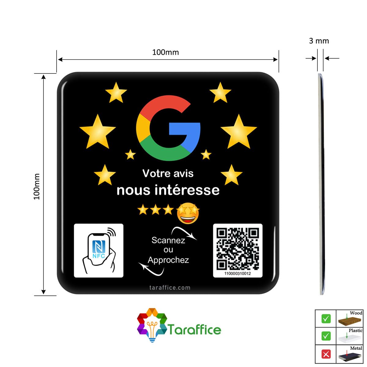 L’autocollant 3M haute adhérence inclus assure une fixation rapide sur toute surface lisse, sans perçage ni outil. Avec son format 100×100 mm et son épaisseur de 3 mm, elle s’intègre parfaitement à l’accueil, sur un comptoir ou en vitrine, apportant une touche élégante et professionnelle à votre espace. Installation instantanée : plaque NFC & QR Code prête en quelques secondes. Fabriquée en PVC premium avec résine époxy, elle offre une finition brillante et durable, conservant son aspect neuf au fil du temps. Carte Avis Google NFC - Social Business NFC Design compact et raffiné. Qualité haut de gamme. Plaque en différente taille et matière avec puce NFC (sans contact) et QR Code ... Compatible IPhone et Android; Technologie NFC sans contact, comme le paiement... Pack soigné : plaque NFC & QR Code + code d’activation fourni séparément. Compatible iPhone, Android et tout smartphone lisant le NFC ou un QR Code, elle permet à vos clients de laisser un avis en quelques secondes, sans application. Parfaite pour : commerces, restaurants, hôtels, bureaux, salons de coiffure, instituts de beauté, bars, et bien plus encore. Badge NFC Restaurant Boutique Plaque NFC Et QR Code Pour Google Avis - 12x12cm - Avis Google Pour Enseignes Et Entreprises (x2 Support Physique Avis Clients Commerce Restaurant Stickers NFC avis Google | Maplaque NFC Expérience client haut de gamme : Offrez un moyen chic et pratique d’interagir avec votre commerce.